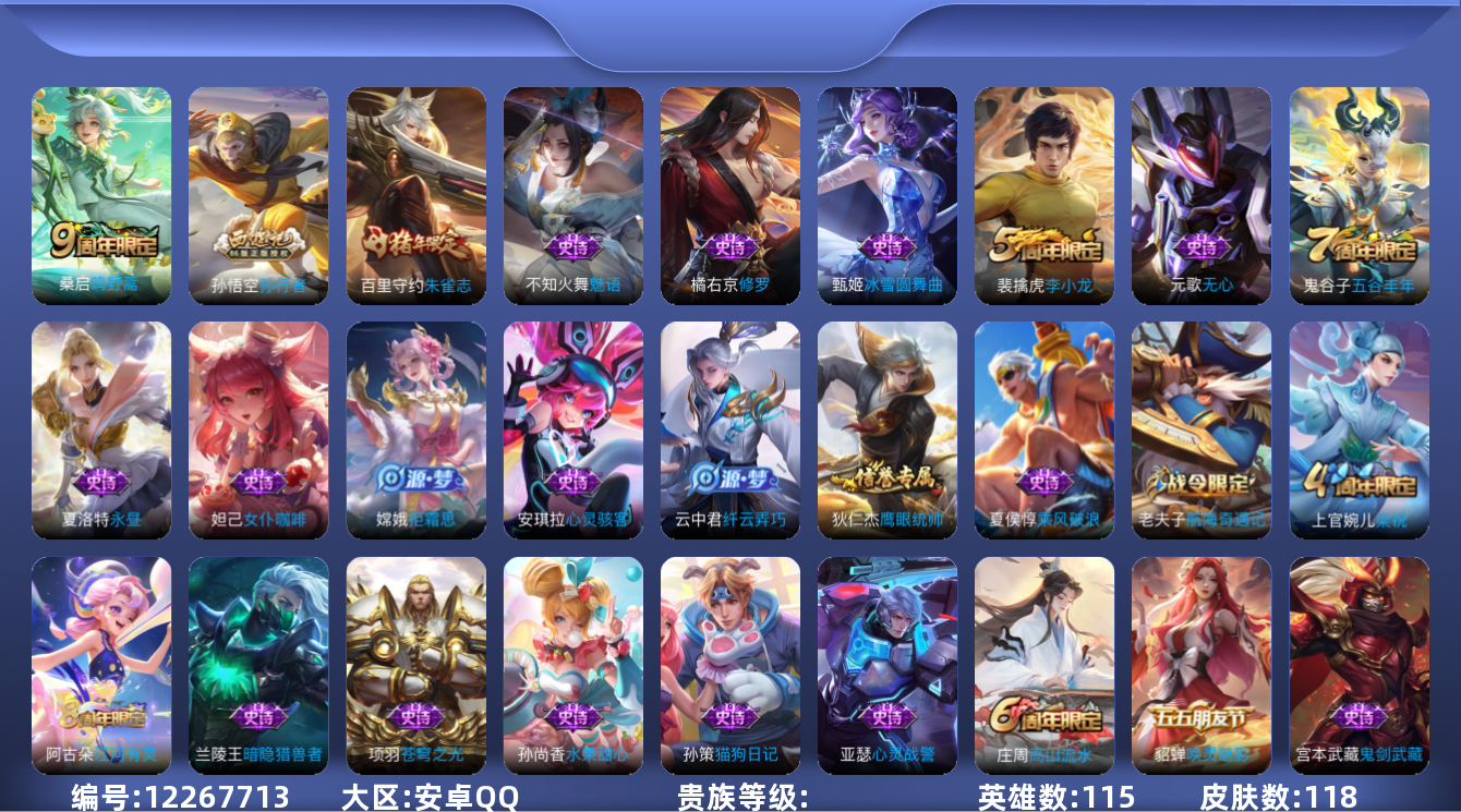 游戏区服:王者荣耀 / 安卓系统 / QQ账号