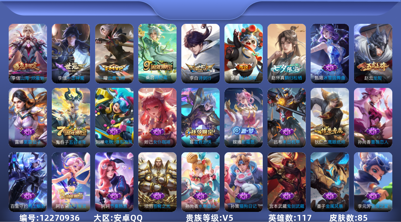 游戏区服:王者荣耀 / 安卓系统 / QQ账号
