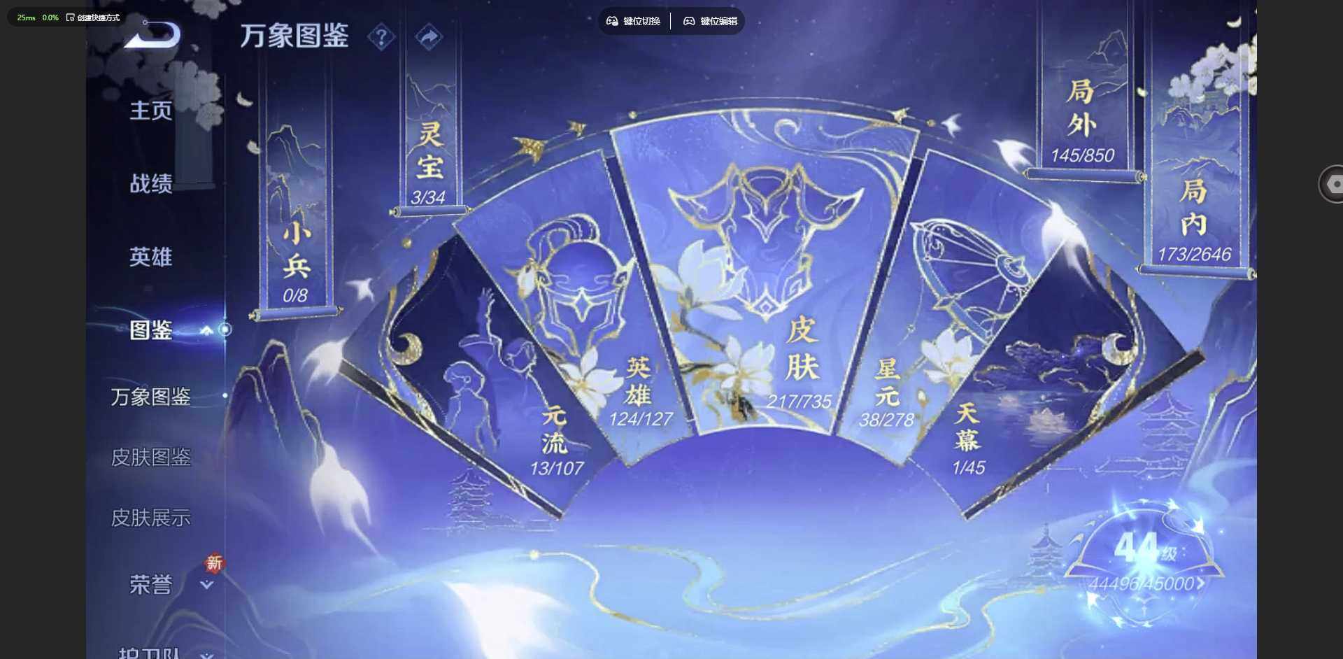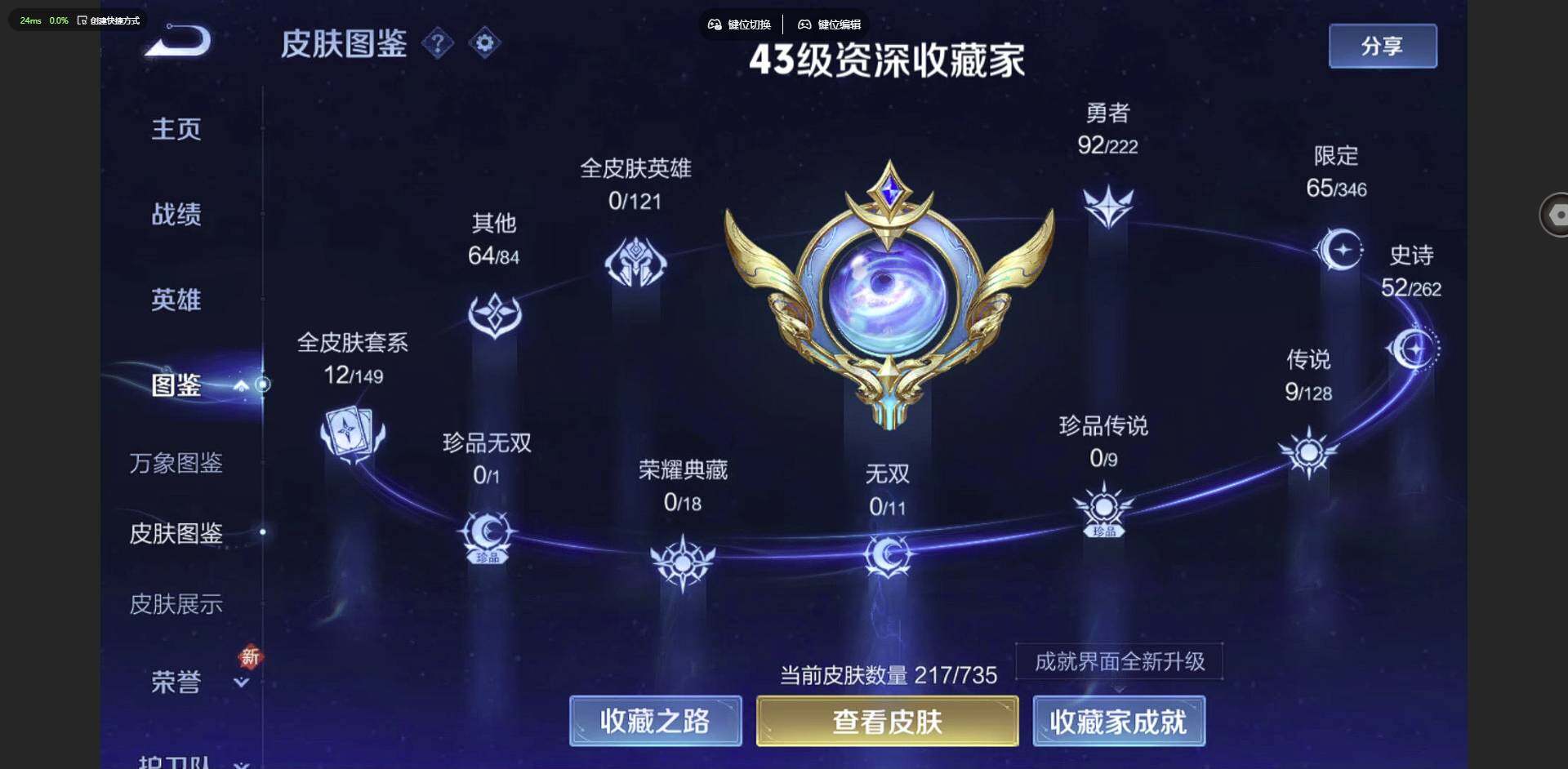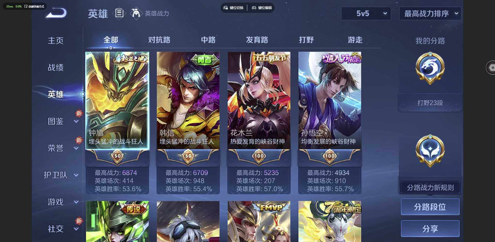 [12282817]: 可修改 贵族等级: V7 英雄数: 124 皮肤数: 217 星传说: 幽冥火 传说皮: 黄金狮子座,黄金射手座,久胜战神,一念神魔,末日机甲-孙尚香,地狱火 限定皮: 冰锋战神,遇见飞天,李小龙,梁祝,神威,飞衡,凤求凰,白虎志,至尊宝,武陵仙君,大圣娶亲,高山流水,孙行者,猪悟能,五谷丰年