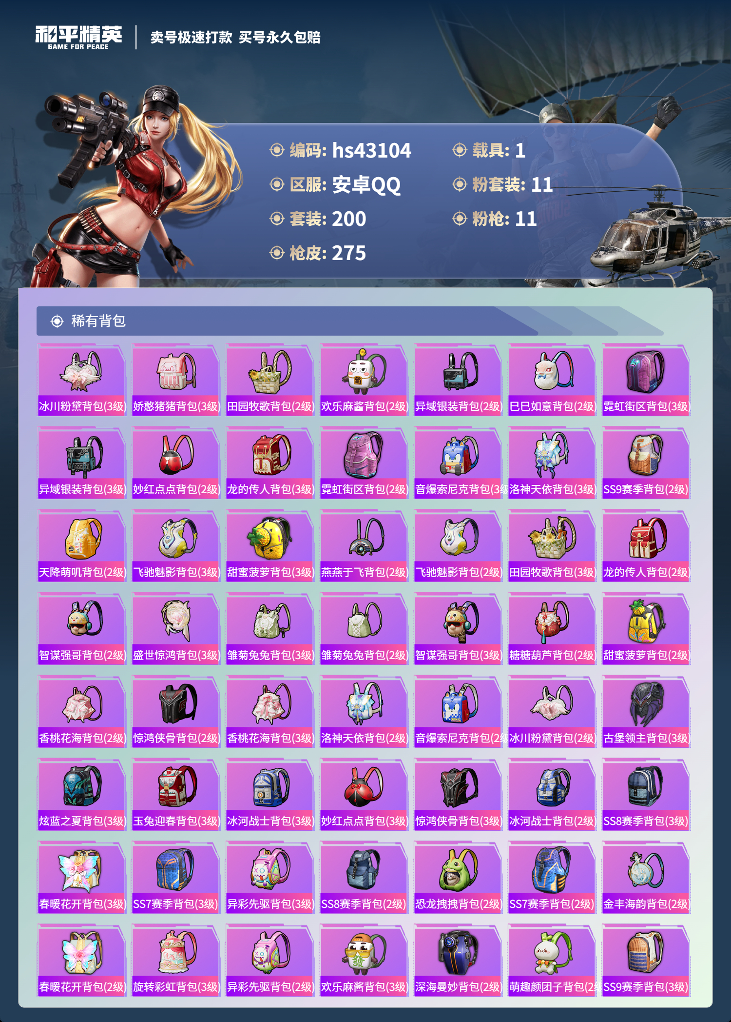 游戏区服:和平精英 / 安卓系统 / QQ账号