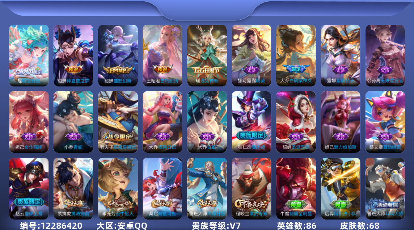 游戏区服:王者荣耀 / 安卓系统 / QQ账号