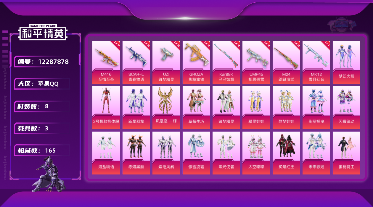 【10871685】【可二次】【苹果QQ】龟仙人 S686-奇异狩猎者 漫步者 新星烈龙 炙焰红王 海龙奔腾 赤焰黑爵 M416-至情至圣 海盐物语 太空嘟嘟飞行器 GROZA-焦糖拿铁 瑞龙福将 浪漫天命 梦幻火箭飞行器 甜心娃娃飞行器 纯白誓言 团圆交子 紫电风暴 奇异狩猎者 M762-瑞龙福将 酣梦娃娃 兰博轿车灰色 狂沙舞者 兰博SUV黄色 M24-翩跹演武 精灵娃娃 蜜桃特工 梦幻火箭