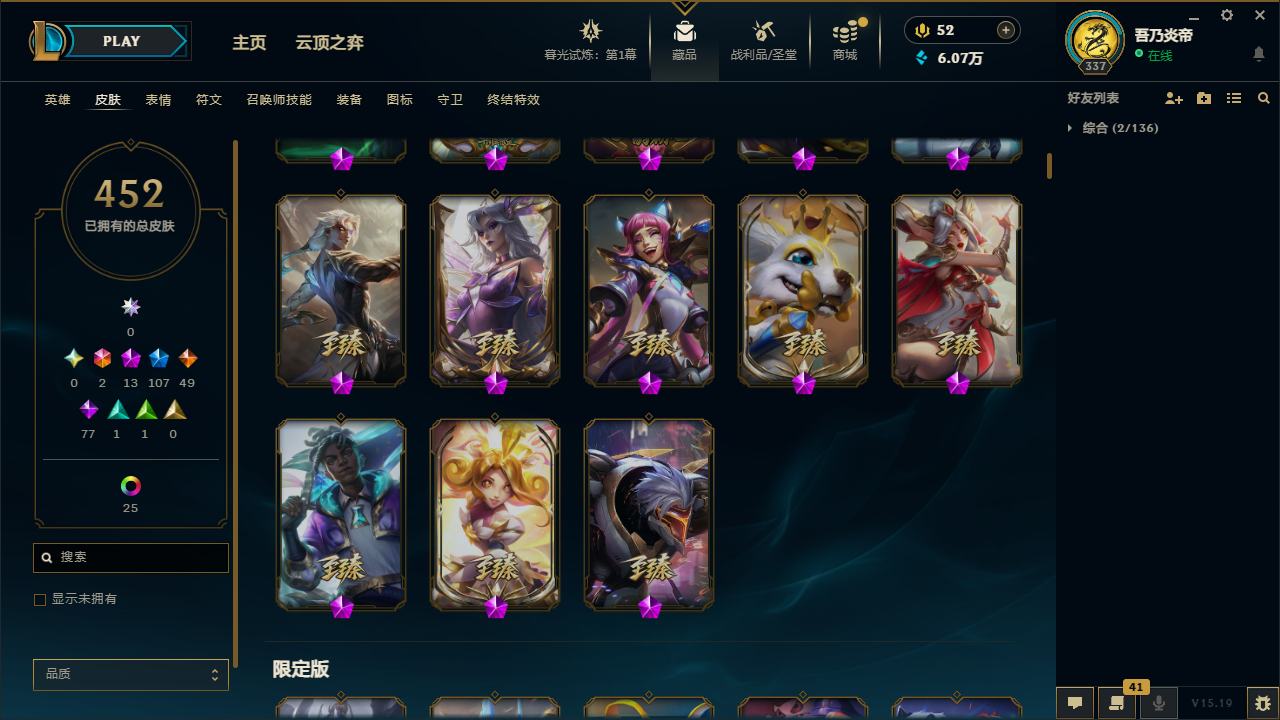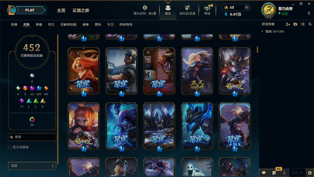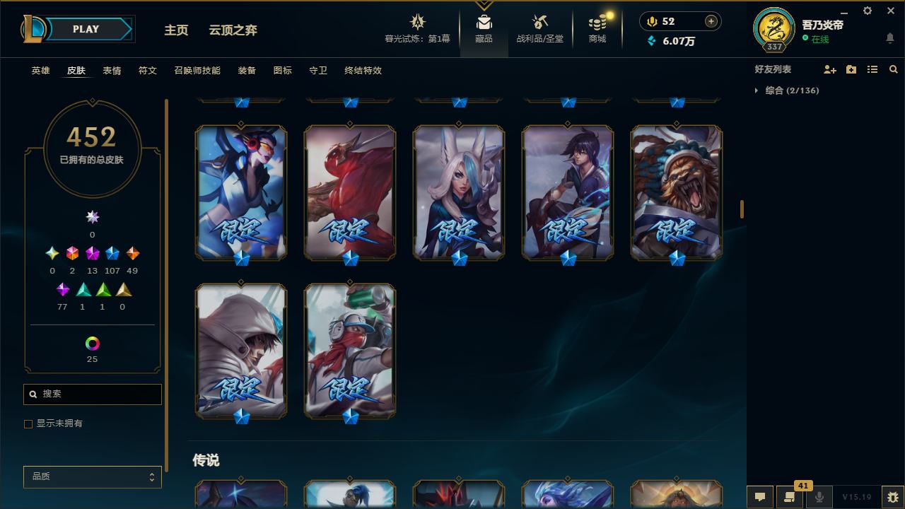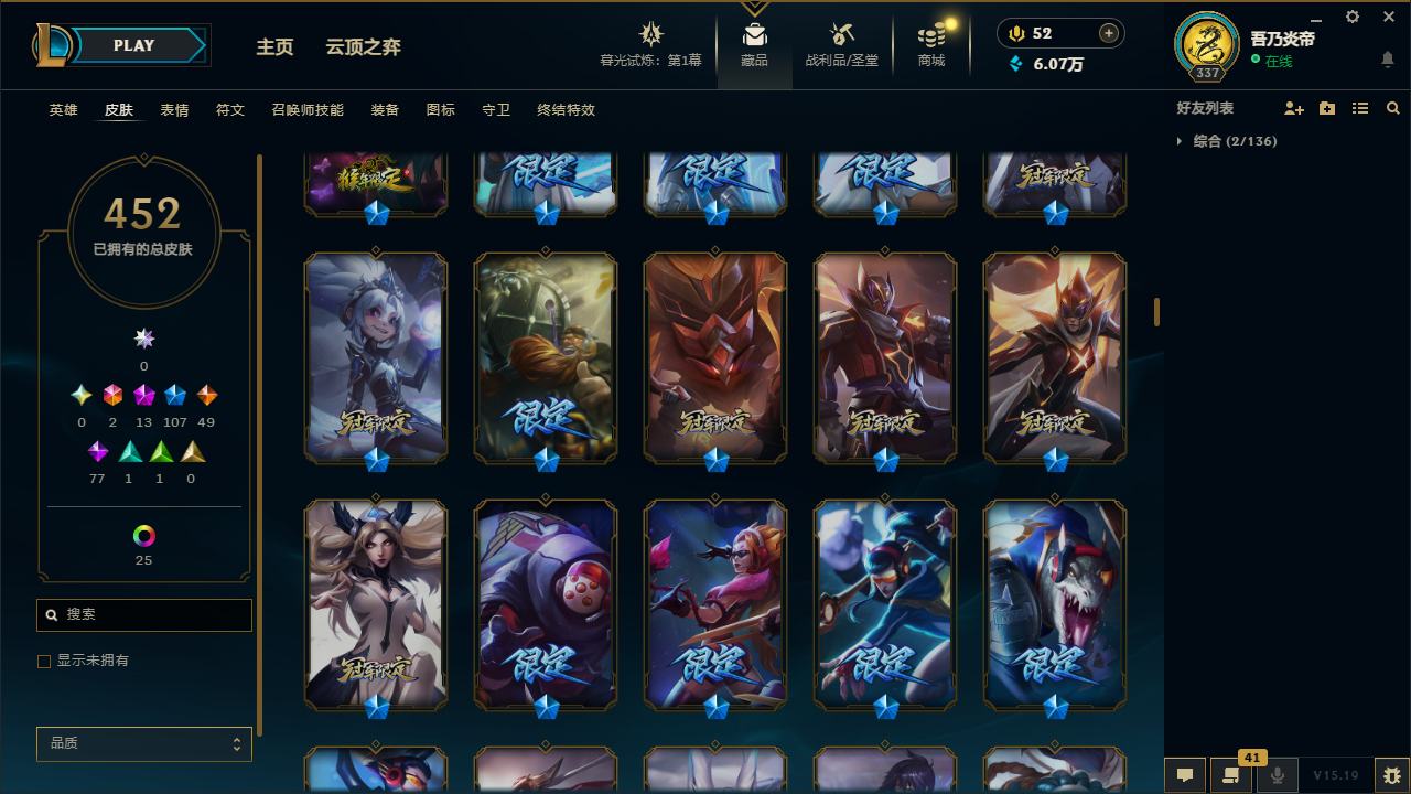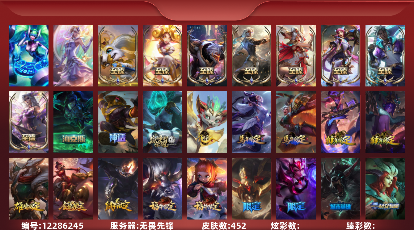 【10871996】[12286245]黄龙炫彩!龙的传人李青!E12117.无畏先锋-452皮2终极13神话107限定25炫彩6臻彩