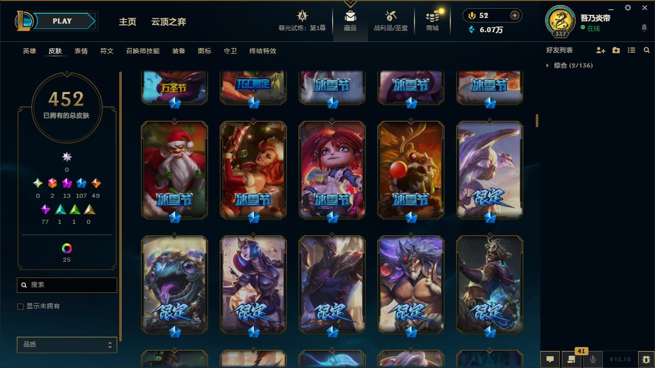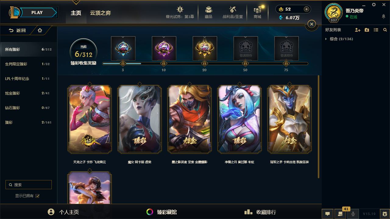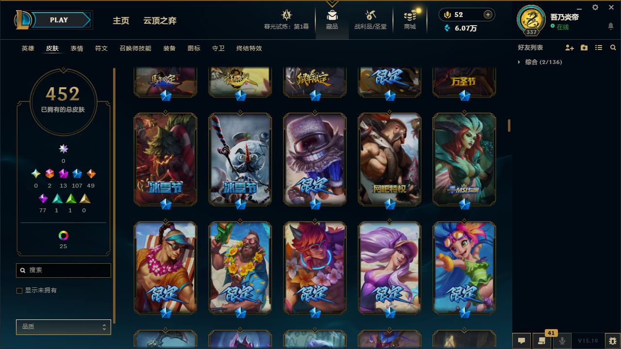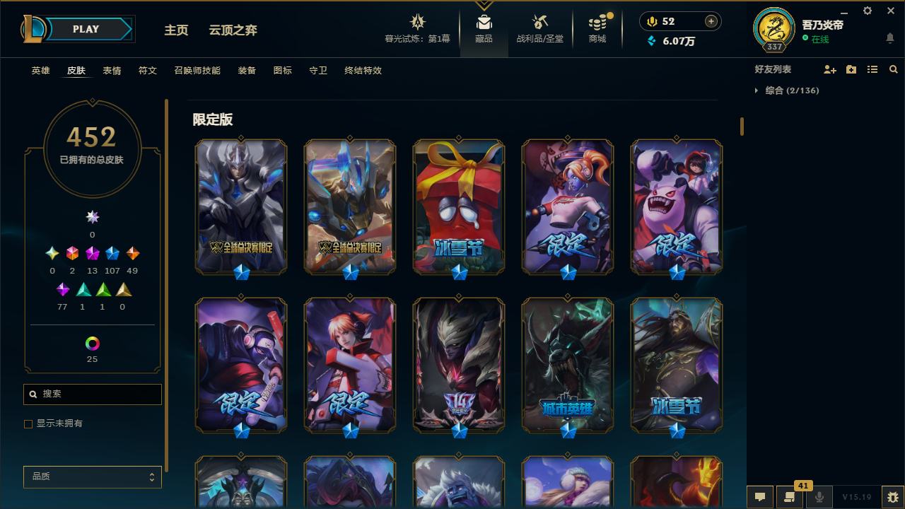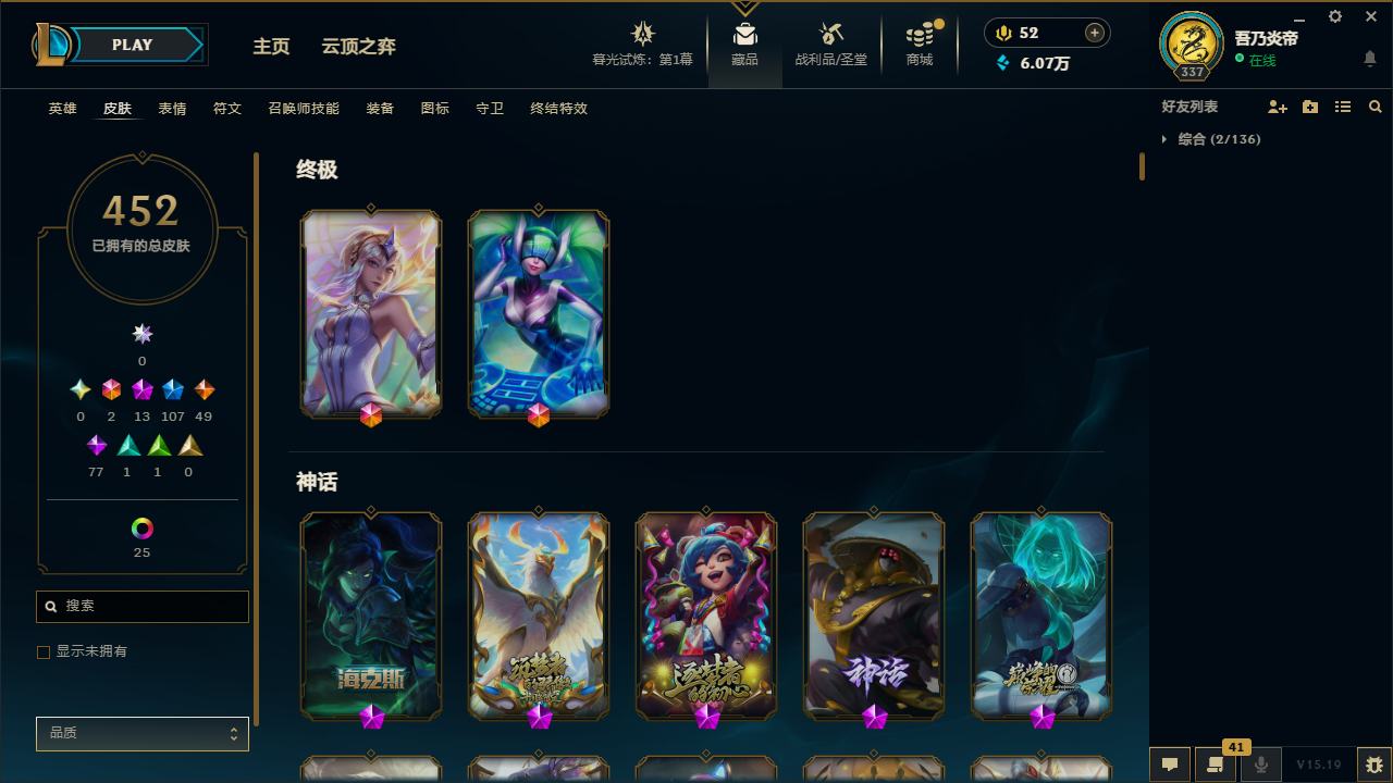【10871996】[12286245]黄龙炫彩!龙的传人李青!E12117.无畏先锋-452皮2终极13神话107限定25炫彩6臻彩