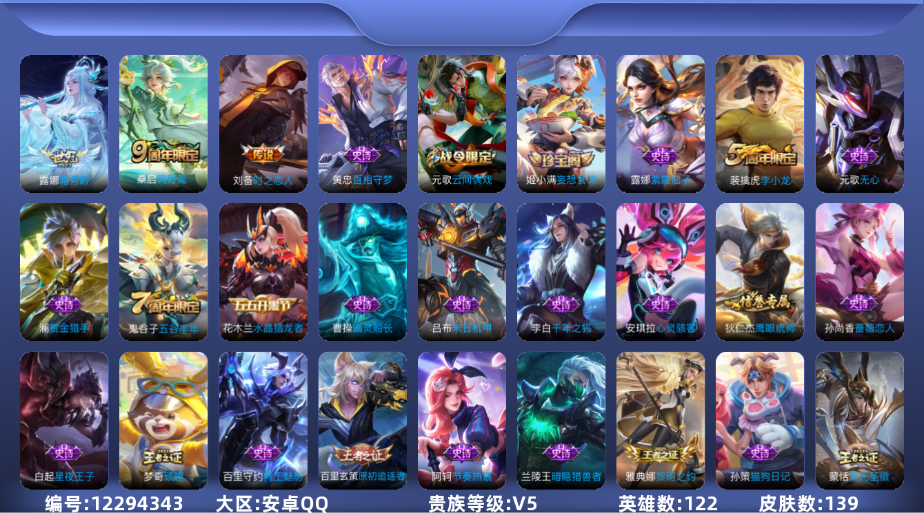 【10873374】【可二次】【QQ(安卓)】大漠名商 黎明之约 鹰眼统帅 水晶猎龙者 偶像歌手 原初探秘者 圣诞恋歌 星夜王子 擒涛扼浪 心灵骇客 圣诞狂欢 沙漠行僧 演武夺筹 紫霞仙子 绅士熊喵 驱傩正仪 幽灵船长 海盐诗旅 缤纷独角兽 节奏热浪 万华元夜 逐浪之夏 暗夜贵公子 冰冠公主 王者之锤 特工魅影 暗隐猎兽者 金属风暴 天才门将 古海寻踪 摇滚巨星 鬼剑武藏 时之恋人 无心 蔷薇恋