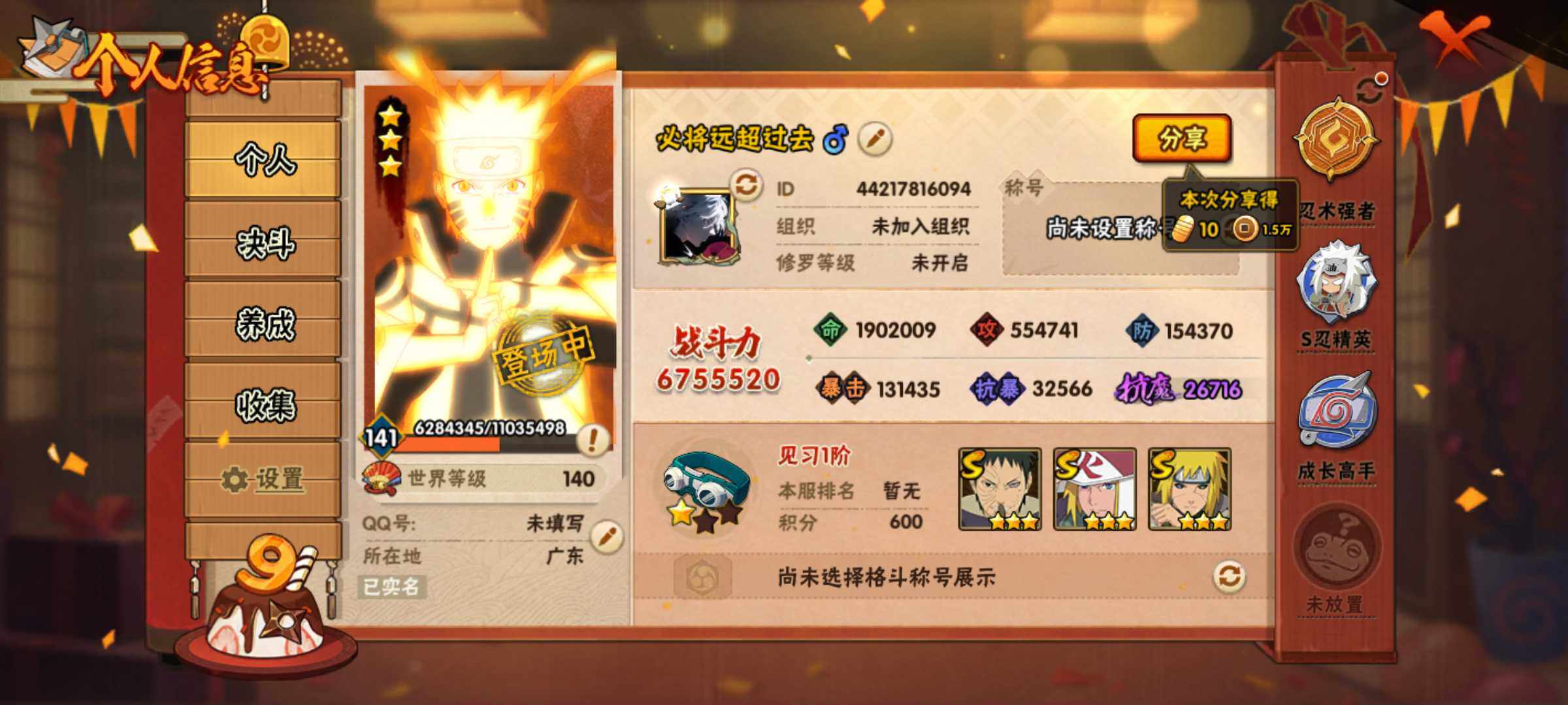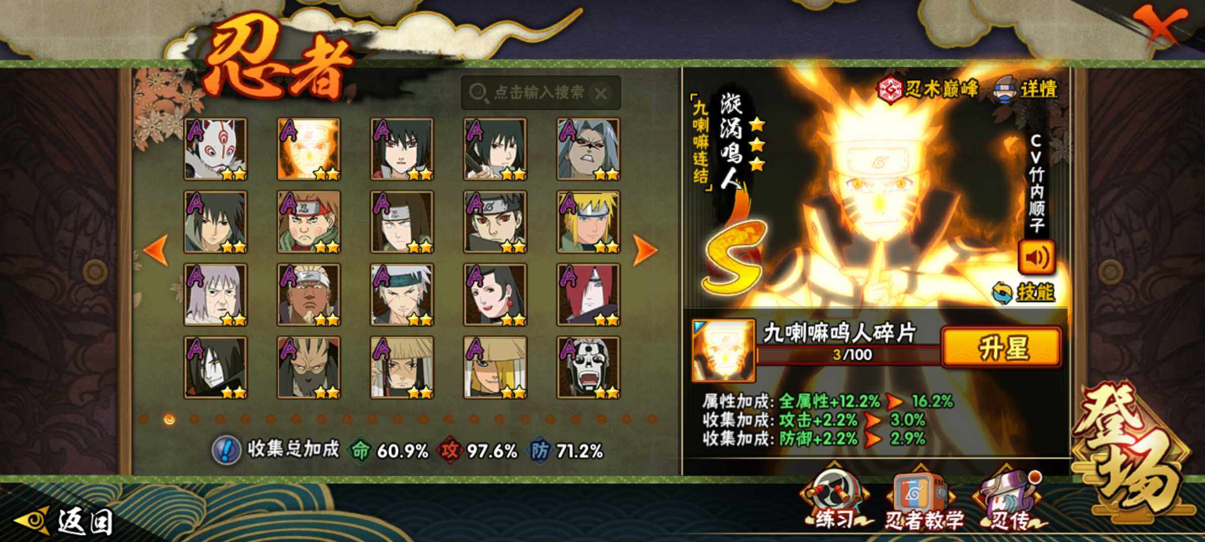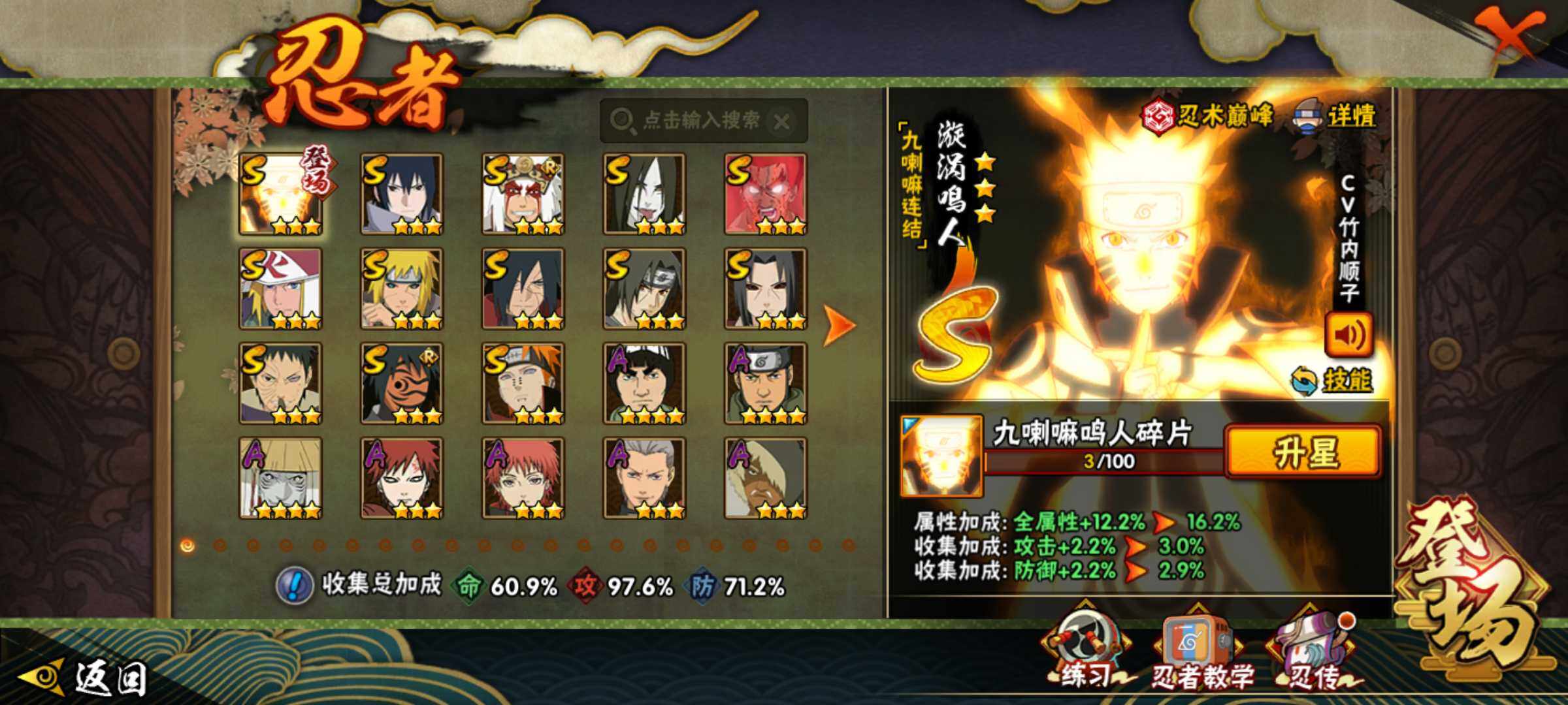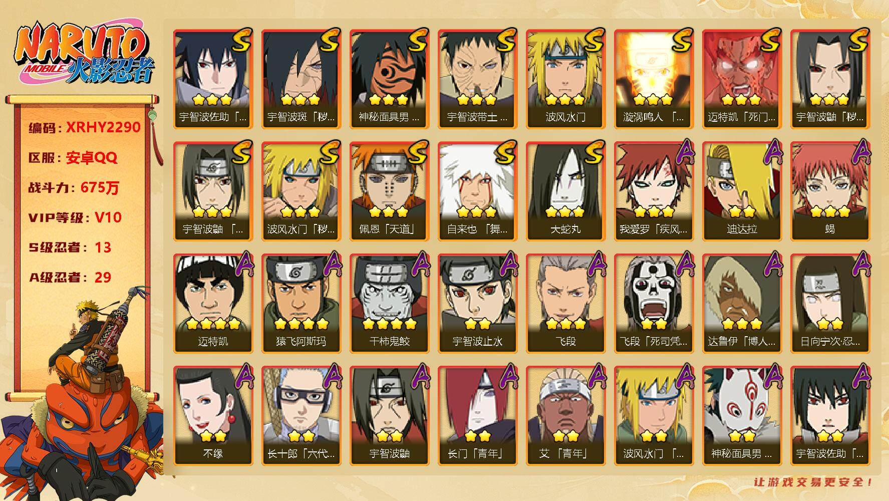 [12309294]XR42405-安卓QQ-13S级忍者数-29A级忍者数 【S级忍者】:波风水门「秽土转生」(3星),宇智波鼬「秽土转生」(3星),宇智波斑「秽土转生·解」(3星),宇智波带土「忍界大战」(3星),宇智波鼬「须佐能乎」(3星),自来也「舞之豪杰」(3星),大蛇丸(3星),波风水门(3星),神秘面具男「红夜之刃」(3星),漩涡鸣人...