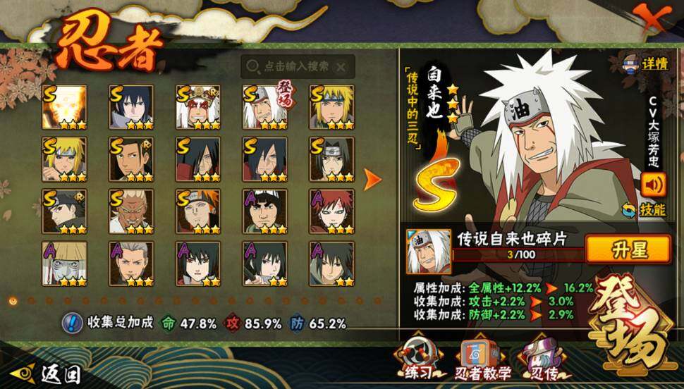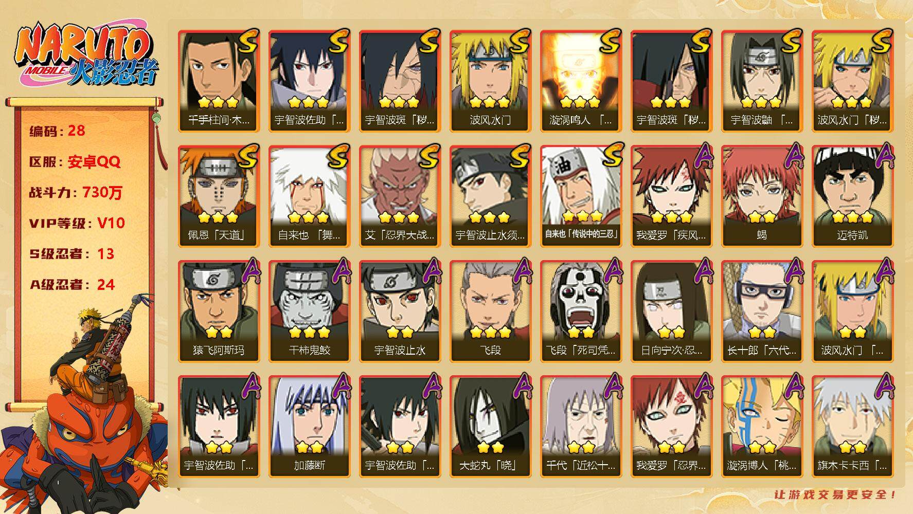 [12321849]【商品标题】:13S级忍者数-24A级忍者数 【S级忍者】:波风水门「秽土转生」(3星),宇智波斑「秽土转生」(3星),宇智波斑「秽土转生·解」(3星),艾「忍界大战」(3星),宇智波鼬「须佐能乎」(3星),宇智波止水「须佐能乎」(3星),千手柱间「木叶创立」(3星),自来也「舞之豪杰」(3星),自来也「传说中的三忍」...