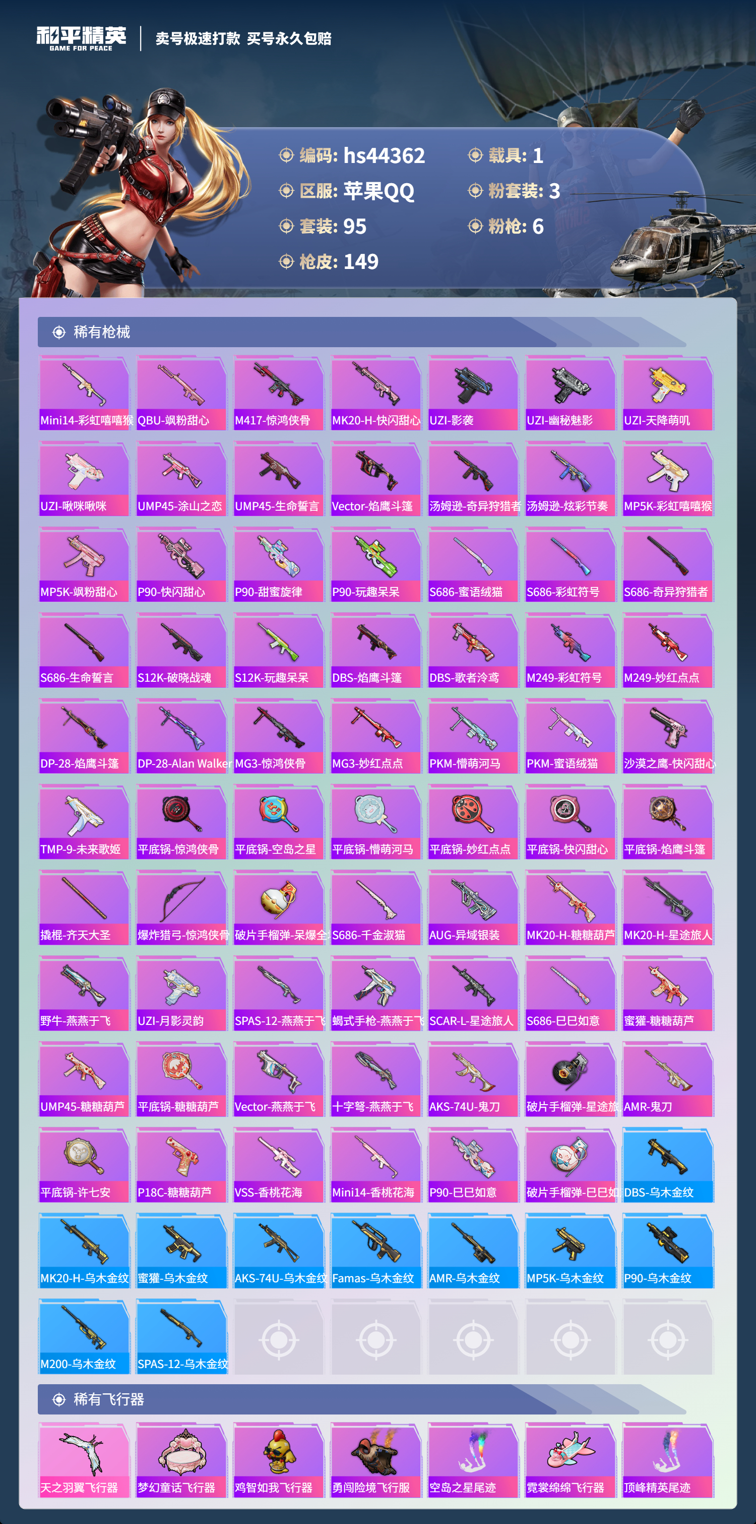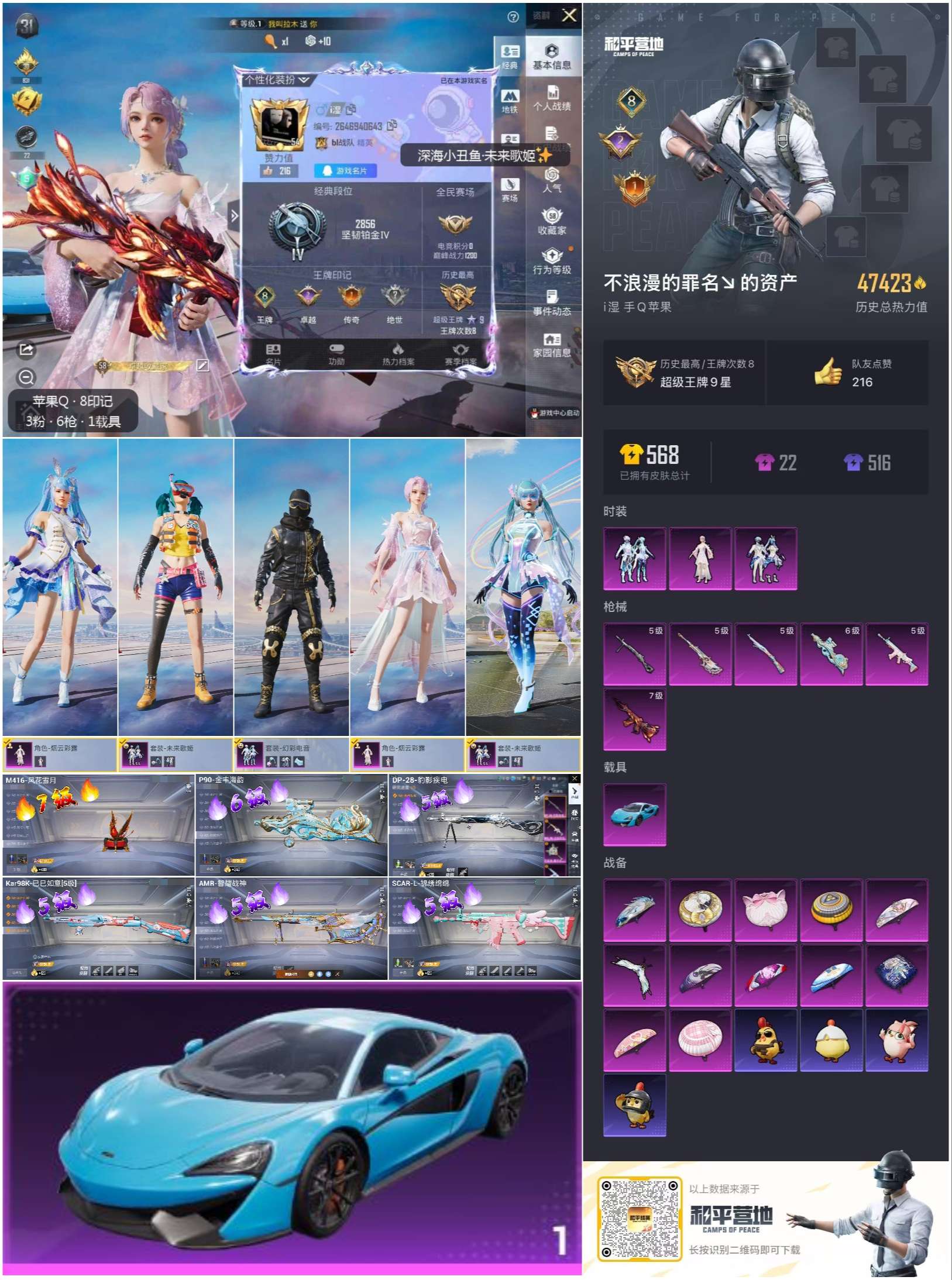 【10880241】【不可二次】【苹果QQ】M416-风花雪月 深海小丑鱼 迈凯伦570S 天际蓝