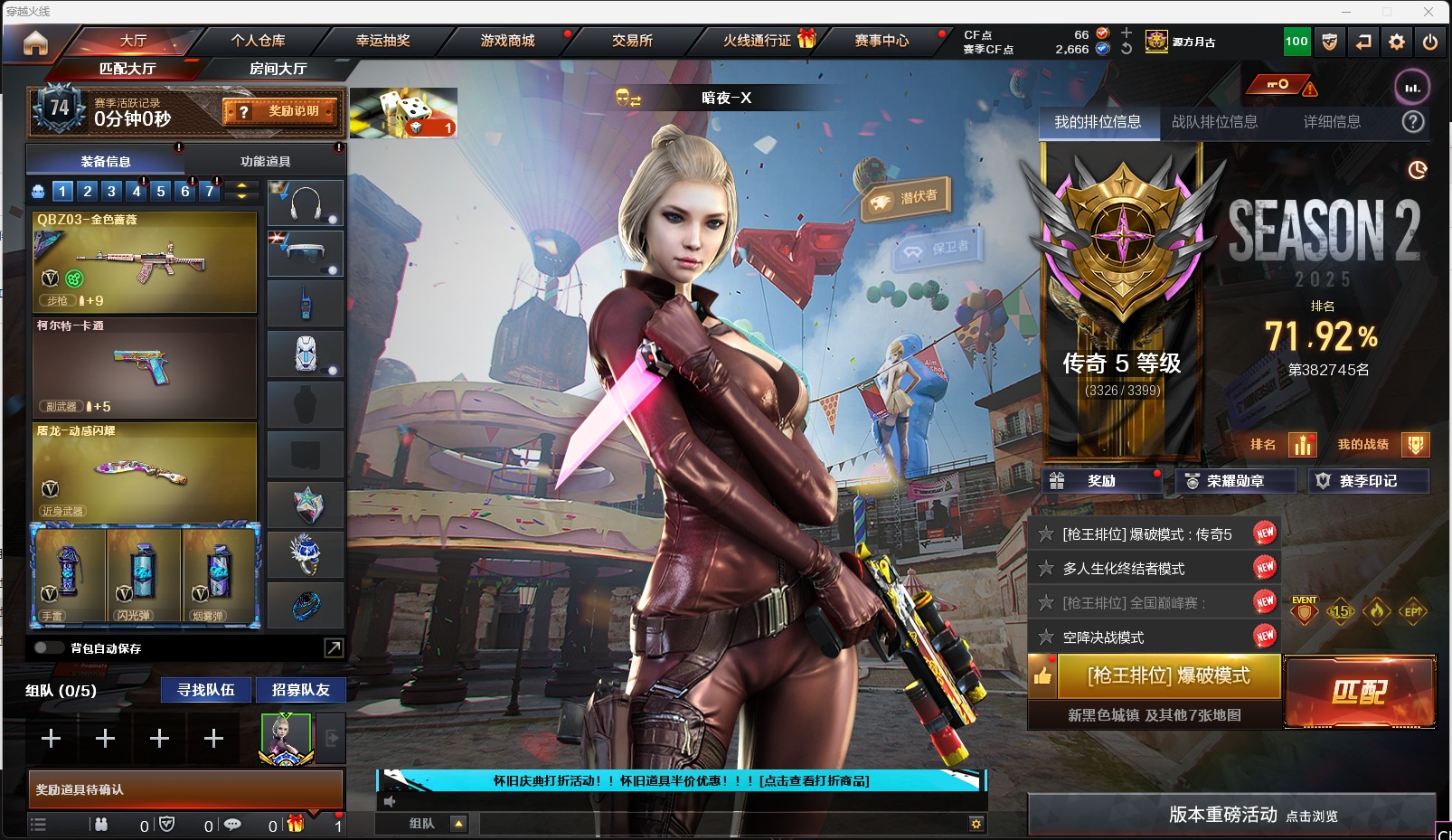 游戏区服:穿越火线 / 南部战区 / 湖南一区互 通