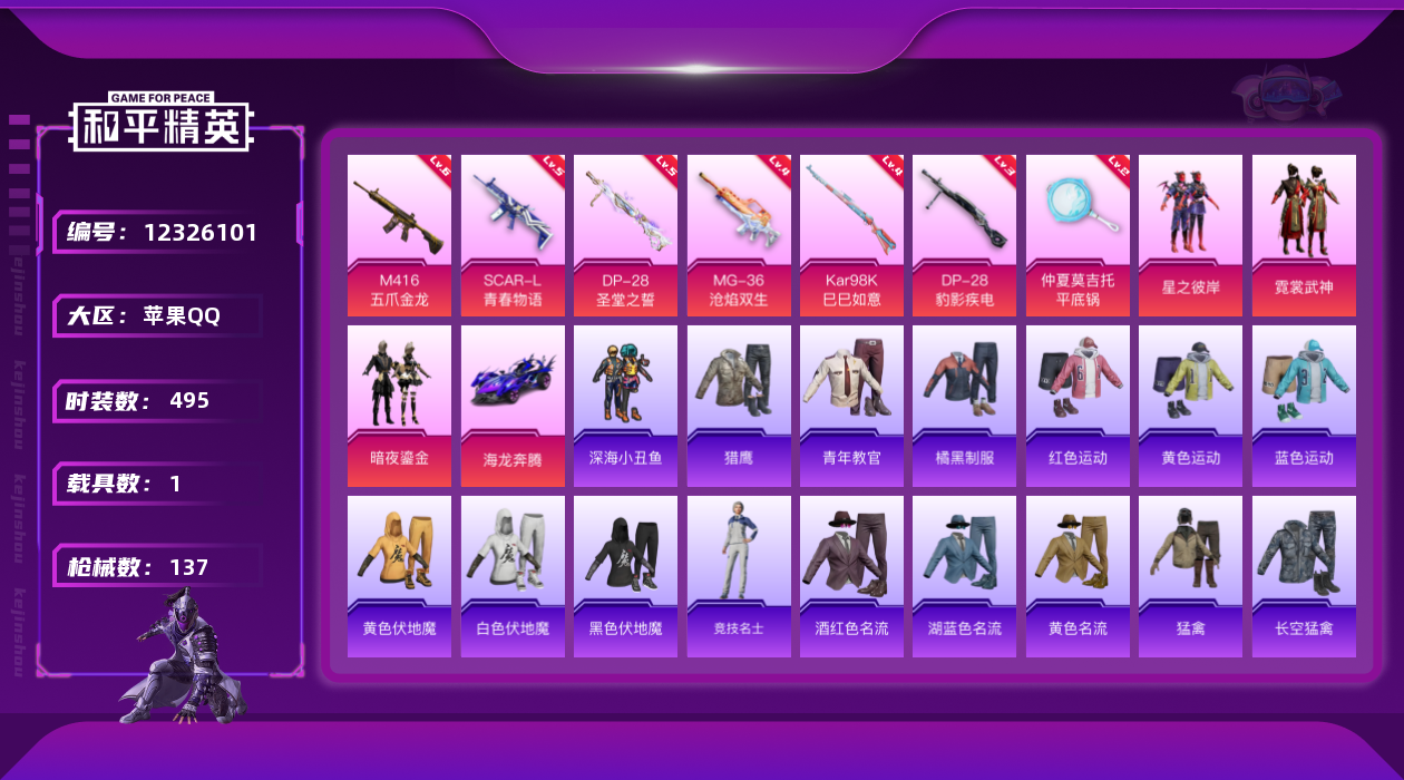 游戏区服:和平精英 / 苹果系统 / QQ帐号