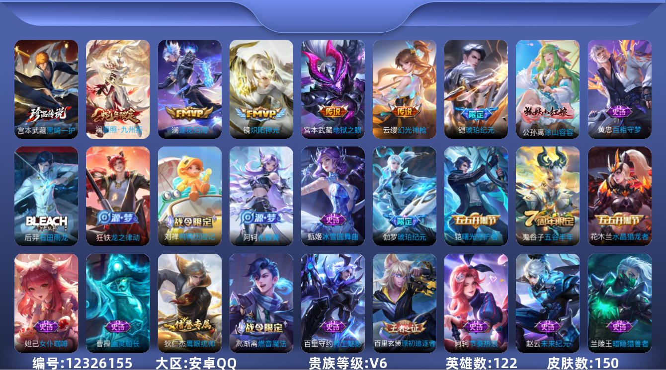 游戏区服:王者荣耀 / 安卓系统 / QQ账号