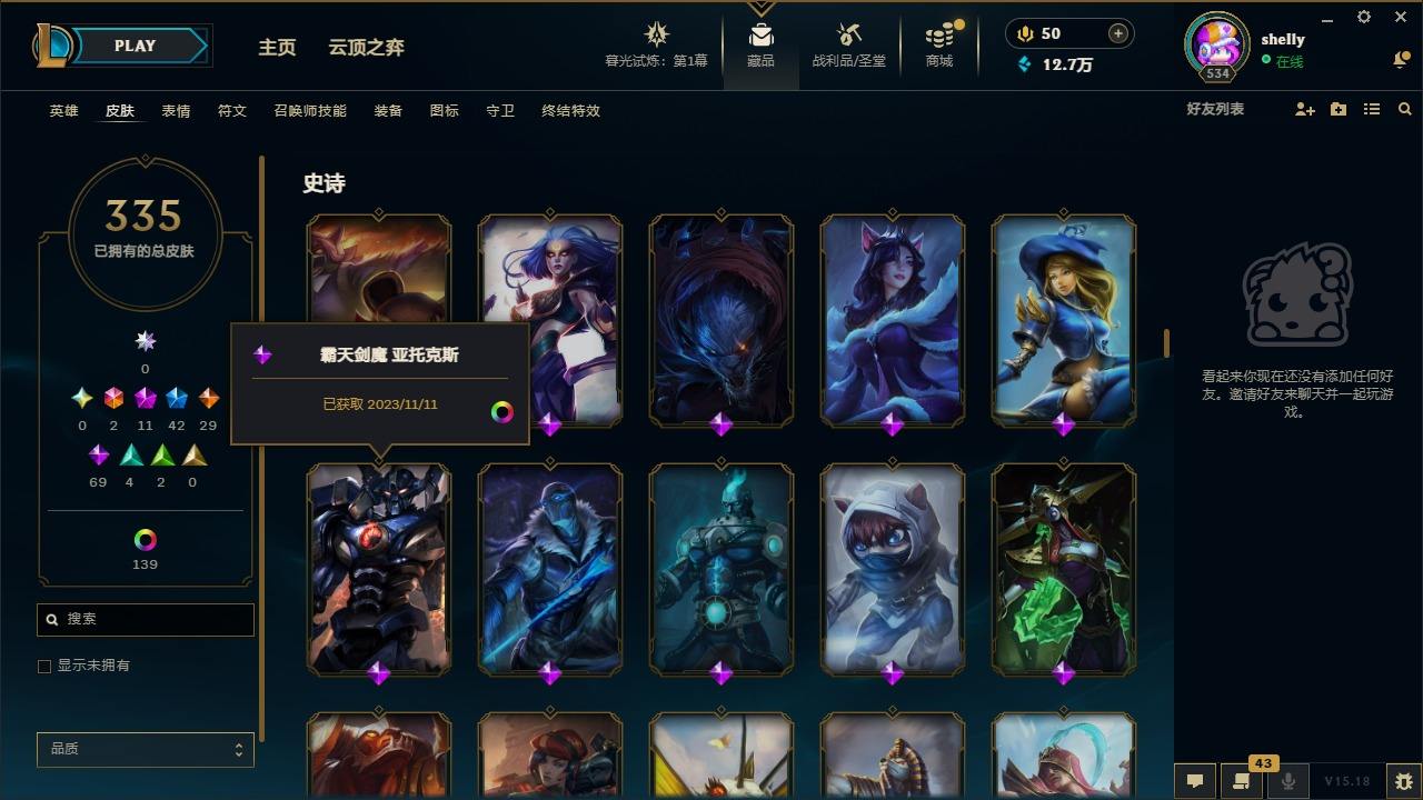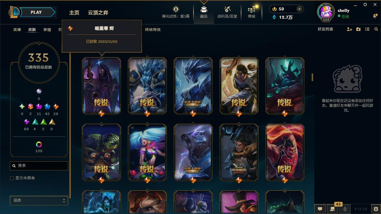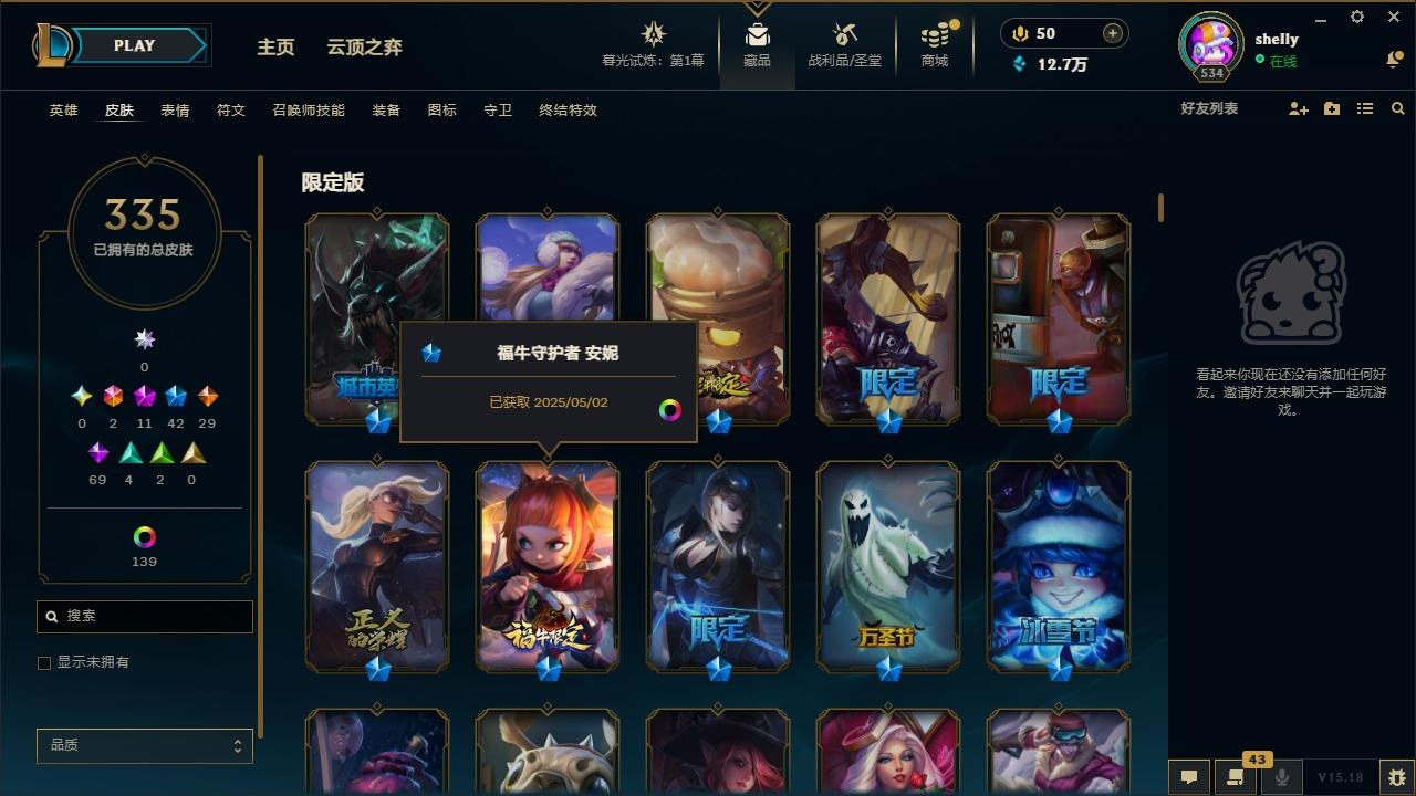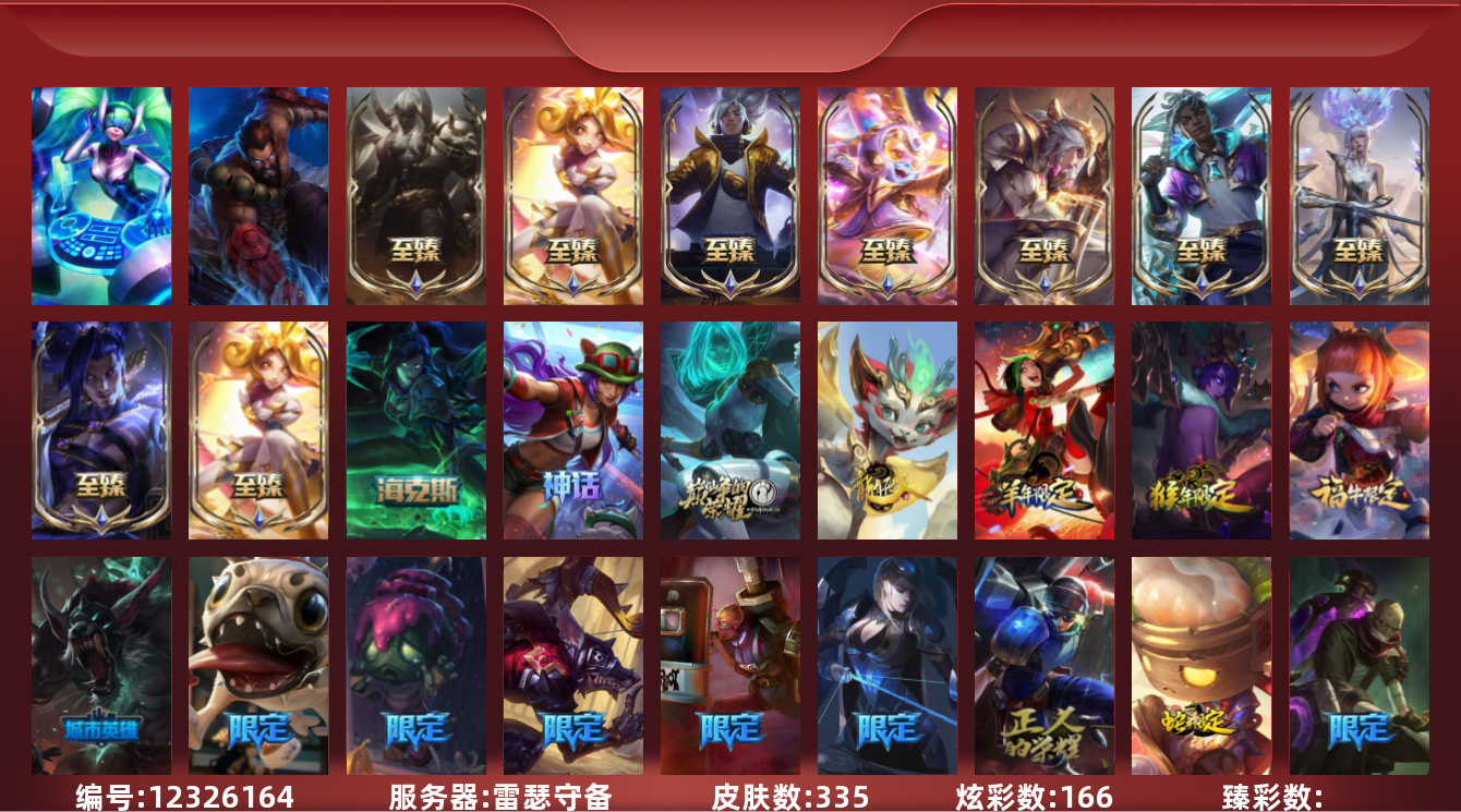 【10881352】[12326164]2终极 11神话 42限定 29传说 69史诗 335皮肤 166炫彩 171英雄 可二次 可修改实名 优质装备:至臻 腥红之月 亚托克斯,至臻 星之守护者 妮寇,至臻 太空律动 节奏幻师 璐璐,至臻 女帝 黛安娜,至臻 真实伤害 亚索,源代码 乐芙兰,防爆天使 凯尔,暗影 沃里克,都铎王朝 图奇,防爆士兵 炼金,冠军之箭 艾希,惊悚派对 阿木木,克格汪