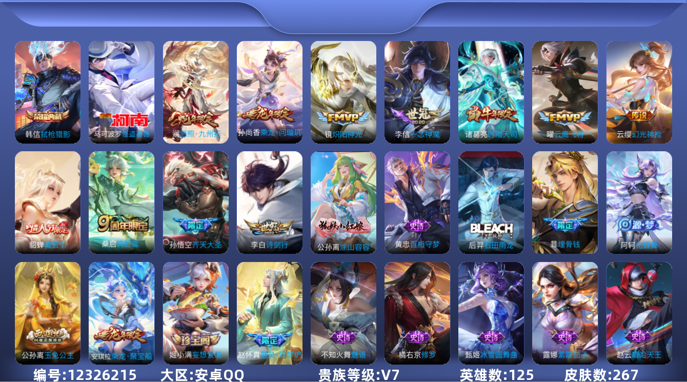 【10881356】【可二次】【QQ(安卓)】黎明之约 乱世虎臣 鹰眼统帅 水晶猎龙者 一念神魔 美猴王 偶像歌手 原初探秘者 圣诞恋歌 星夜王子 舞动绿茵 暗夜猫娘 紫霞仙子 御霄 烛龙 朔风刀 缤纷独角兽 万华元夜 暗夜贵公子 御銮 修罗 特工魅影 诗剑行 女仆咖啡 金属风暴 疑决卦 醍醐杖 德古拉伯爵 江河有灵 古海寻踪 摇滚巨星 鬼剑武藏 齐天大圣 探海日记 魅力维加斯 李小龙 云中旅人