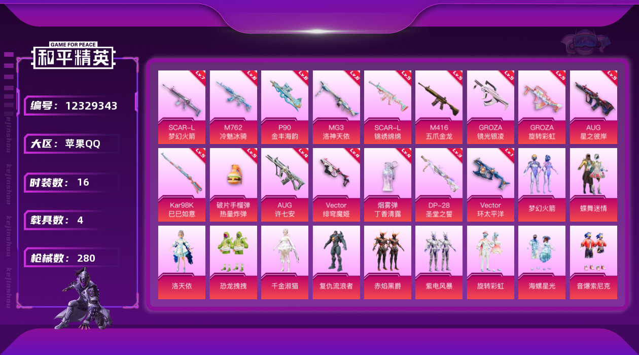 【10881763】【不可二次】【苹果QQ】龟仙人 恐龙拽拽 P90-金丰海韵 焰龙咆哮 M416-五爪金龙 漫步者 M249-古堡领主 机械英豪 洛天依 M762-奇异狩猎者 赤焰黑爵 星之彼岸 瑞龙福将 蝶舞迷情 GROZA-旋转彩虹 AUG-星之彼岸 浪漫天命 梦幻火箭飞行器 激萌罗小黑 团圆交子 紫电风暴 软萌银虎 SCAR-L-梦幻火箭 仰望U8(龙石绿) DP-28-圣堂之誓 M76