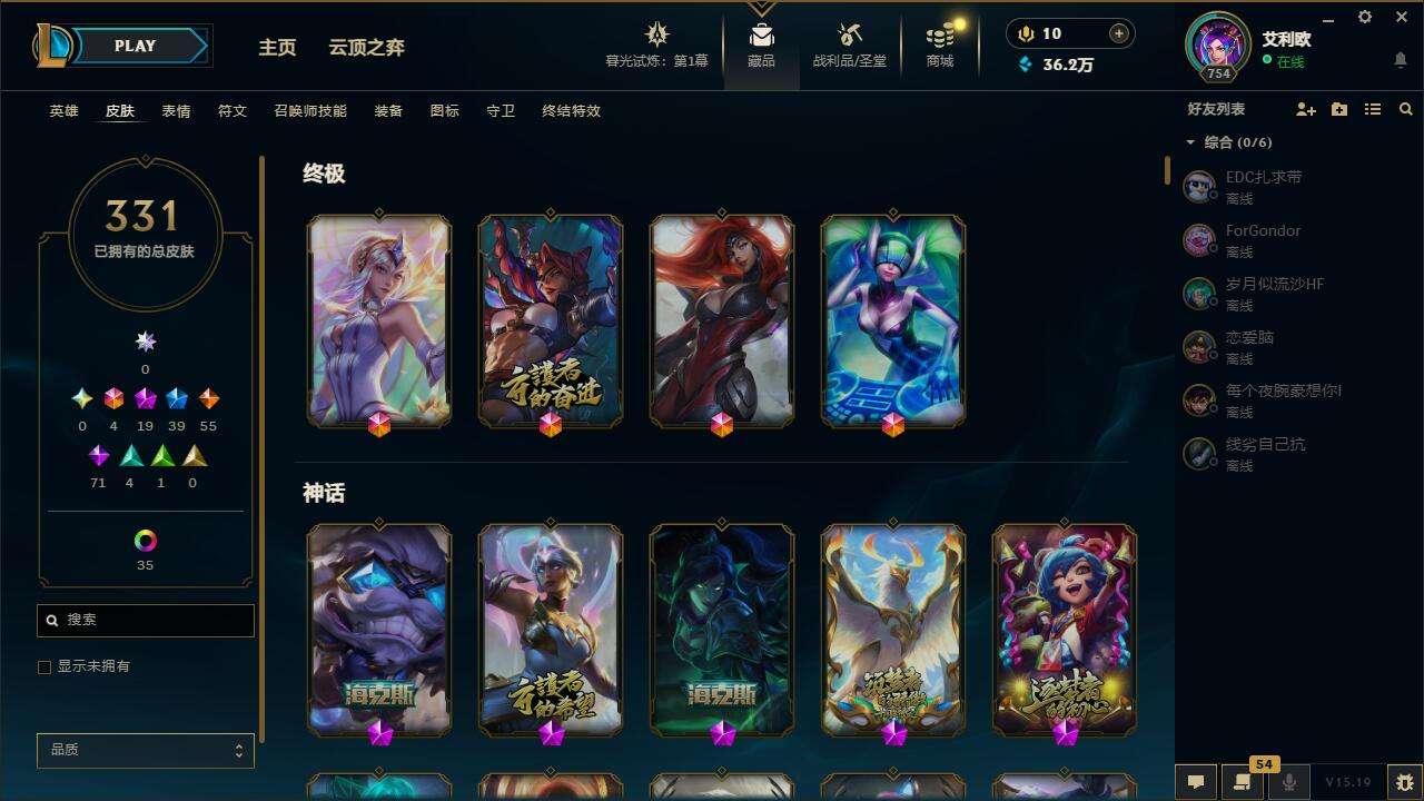 【10883444】[12336856]【gpz_961762】 t27663【诺克萨斯】331皮肤 45炫彩 5臻彩 19神话/39限定/55传说/171英雄 账号等级:754 单双排段位:白银【重要头像】EDG厄斐琉斯 EDG佛耶戈 EDG格雷福斯 EDG悠米 EDG佐伊 星守金克丝炫彩 至臻星之守护者辛德拉 至臻幻灵战斗猫金克丝 至臻神凰行者霞 【重要皮肤】至高天凯尔至