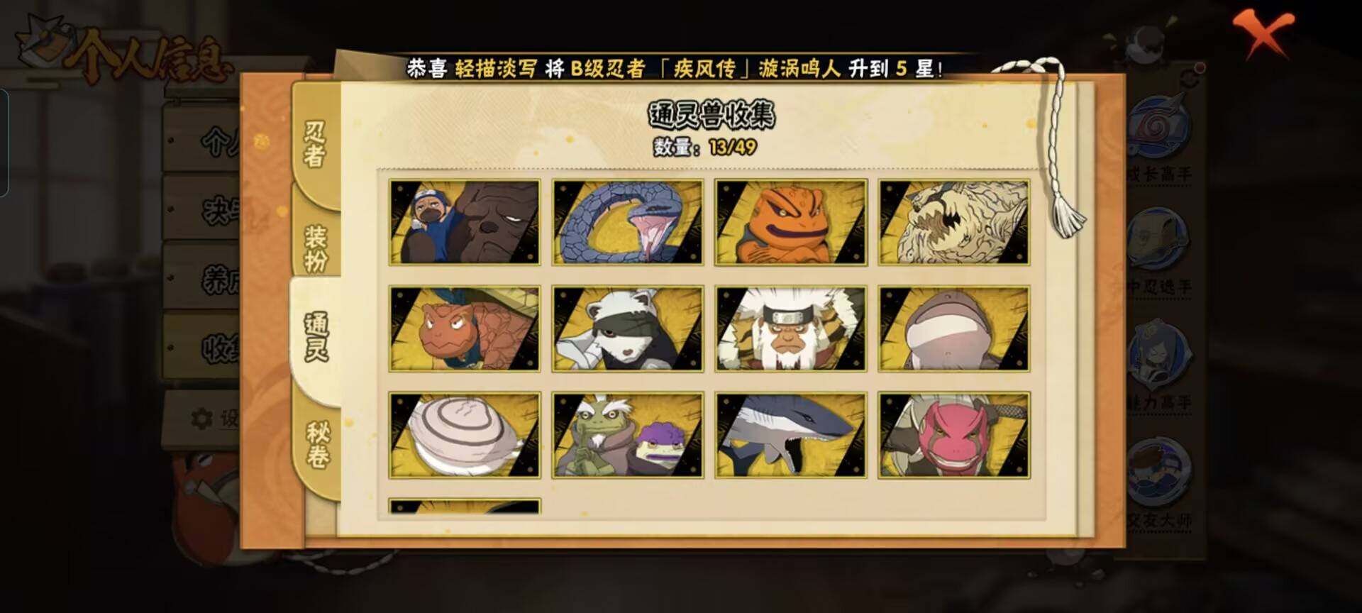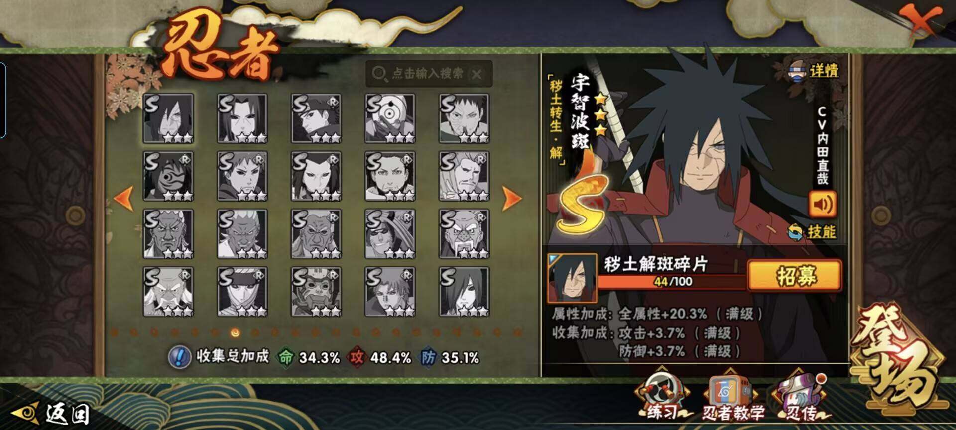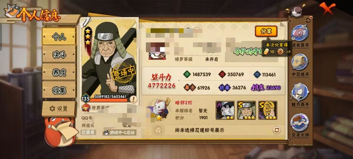 [12337185]【商品标题】:7S级忍者数-17A级忍者数 【S级忍者】:猿飞日斩「秽土转生」(3星),宇智波鼬「须佐能乎」(3星),自来也「舞之豪杰」(3星),波风水门(3星),神秘面具男(3星),漩涡鸣人「九喇嘛连结」(3星),佩恩「天道」(3星) 【A级忍者】:长门「青年」(2星),波风水门「青年」(2星),迪达拉(2星),大蛇丸「晓...