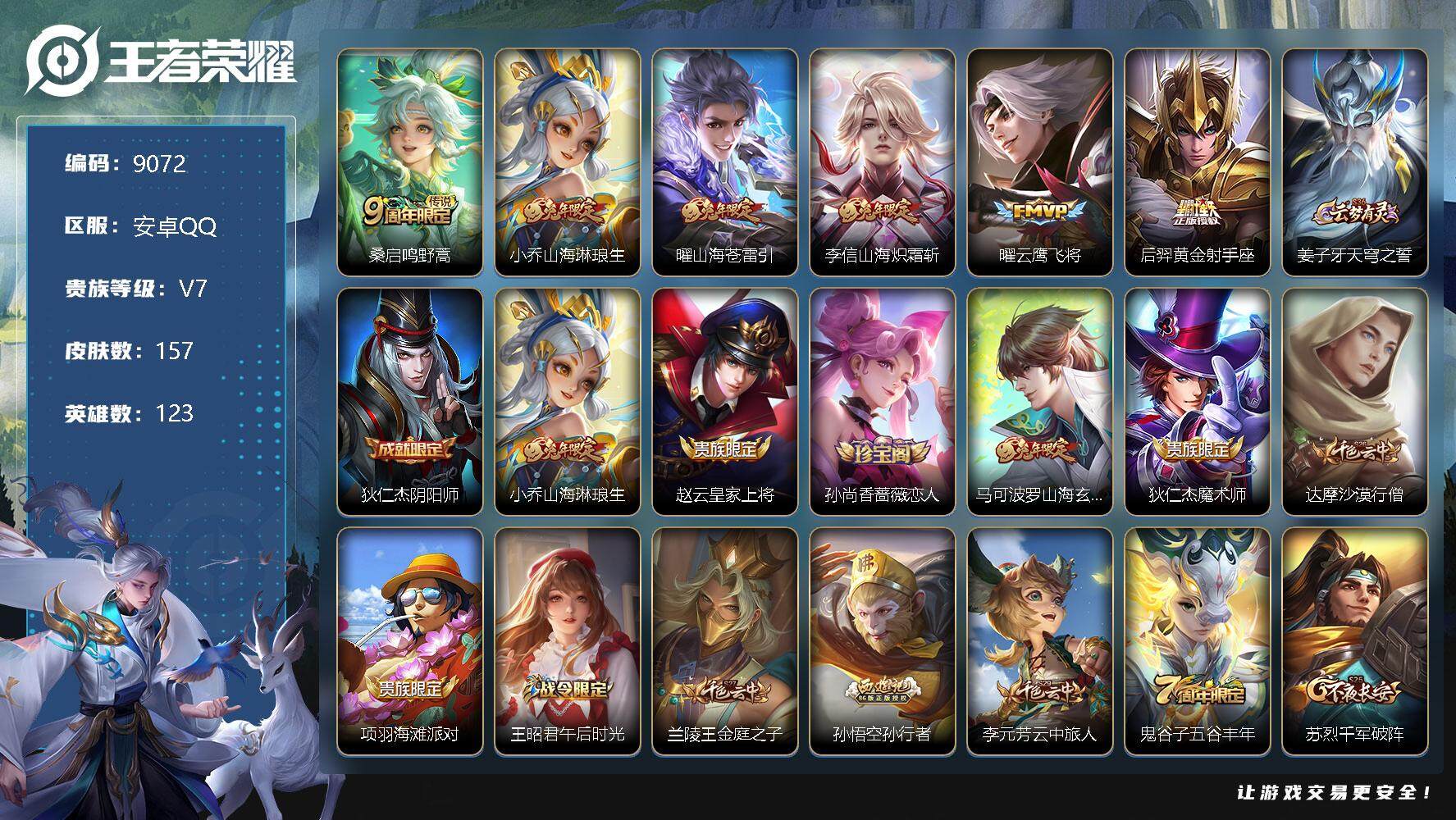 游戏区服:王者荣耀 / 安卓系统 / QQ账号