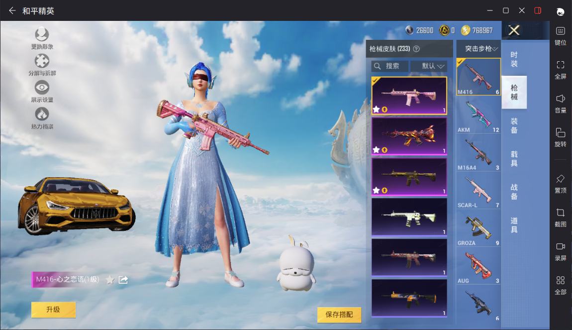 【10887369】【可二次】【安卓QQ】雪国梦幻 M416-五爪金龙 萌兔起飞 奇异狩猎者 新星烈龙 海龙奔腾 心之恋语 蜜桃特工 M416-风花雪月 梦幻火箭 鬼马风驰 暗夜玫瑰 AKM-梦之光华 M416-心之恋语 缤纷油彩 馨动时刻 蝶舞迷情 玛莎拉蒂金色 紫螳螂 SLR-暗夜玫瑰