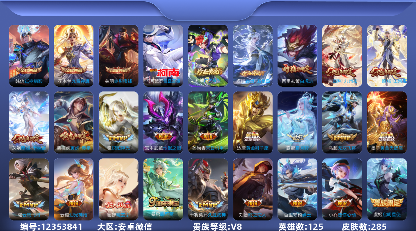 【10887863】【不可二次】【微信(安卓)】鹰眼统帅 水晶猎龙者 晚萤 偶像歌手 地狱之眼 圣诞恋歌 星夜王子 街头霸王 舞动绿茵 妄想食味 暗夜猫娘 紫霞仙子 特工战影 重装意志 燃音魔法 九霄神辉 音你心动 缤纷独角兽 苍威无极 特工魅影 乐园奇幻夜 花好人间 音你心动女 女仆咖啡 金属风暴 黄金天蝎座 青蛇 德古拉伯爵 摇滚巨星 丁香结 鬼剑武藏 时之恋人 冰雪圆舞曲 顽岩魄 赏金猎手