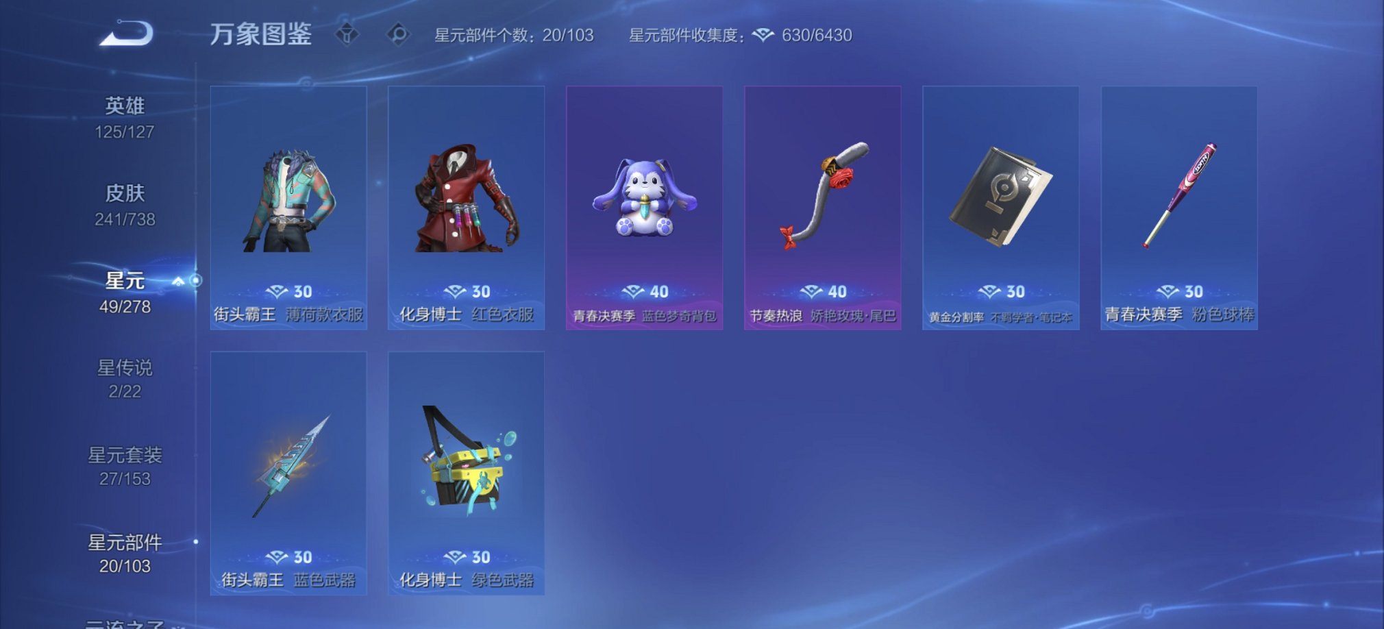 【10888042】【可二次】【微信(安卓)】化身博士 星界游侠 水晶猎龙者 原初探秘者 龙腾万里 缤纷独角兽 万华元夜 千军破阵 牛运亨通 醍醐杖 圆桌骑士 时之恋人 白晶晶 女武神 魅力维加斯 功夫炙烤 妄想特派 乘风破浪 天穹之誓 爱心护理 铁甲之心 擒涛扼浪 掌控之力 白色死神 铁骨偃魂 绅士熊喵 鲨炮海盗猫 潮玩骑兵 纤云弄巧 炽热元素使 西部大镖客 混沌棋 猫狗日记 群星魔术团 次元