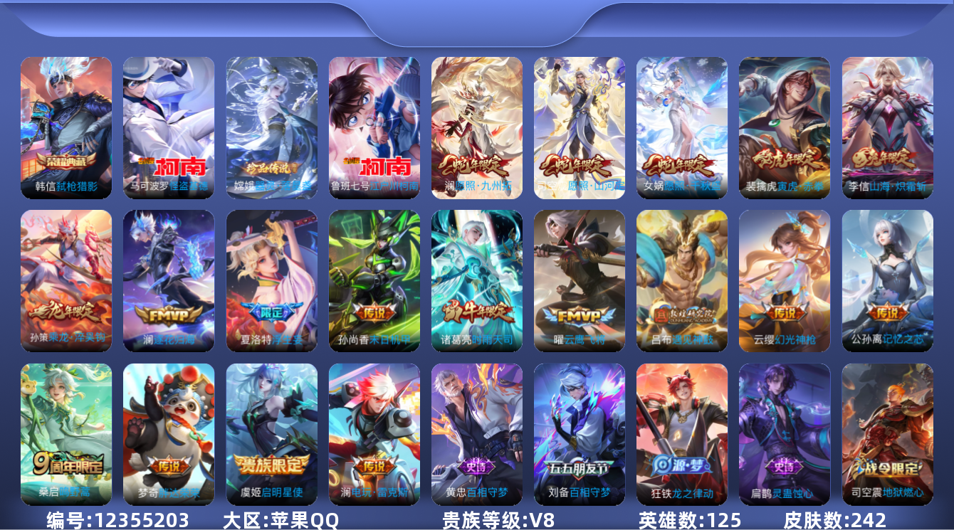 【10888326】【不可二次】【QQ(苹果)】黎明之约 山海炽霜斩 星界游侠 乱世虎臣 后羿如梦令 暗影游猎 鹰眼统帅 水晶猎龙者 晚萤 偶像歌手 圣诞恋歌 星夜王子 电玩高手 妄想食味 紫霞仙子 炽弈燎原 胡桃夹子 百解令 特工战影 月团寄思 探海日志 燃音魔法 浮生妄 电玩·雷克斯 缤纷独角兽 江户川柯南 银河之约 苍威无极 银翎春语 特工魅影 花好人间 女仆咖啡 金属风暴 德古拉伯爵 江