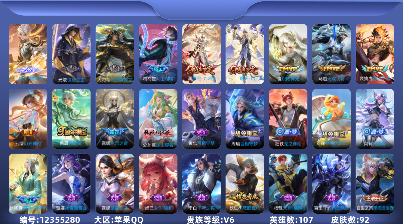 游戏区服:王者荣耀 / 苹果系统 / QQ帐号