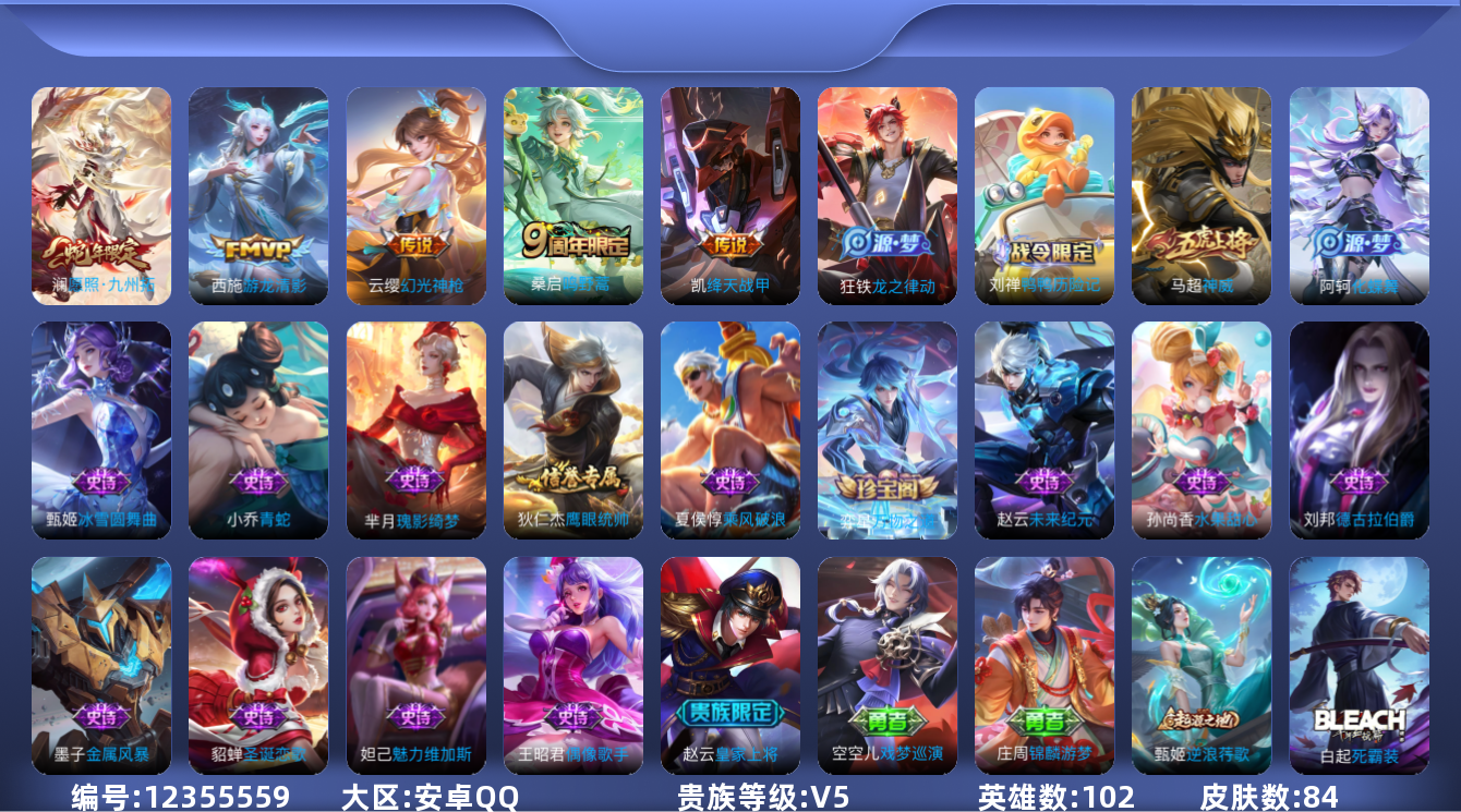 游戏区服:王者荣耀 / 安卓系统 / QQ账号