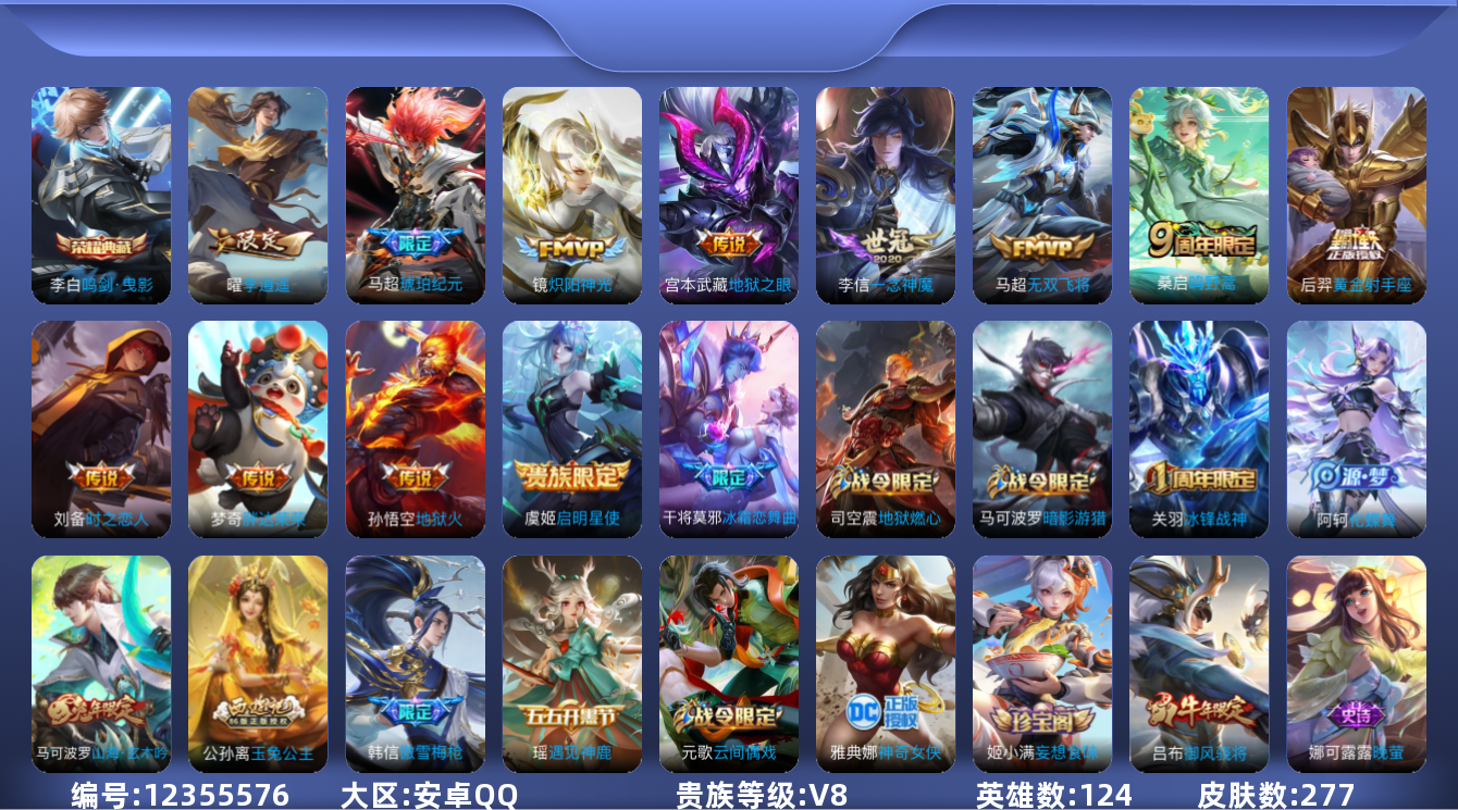 【10888413】【可二次】【QQ(安卓)】黎明之约 乱世虎臣 鹰眼统帅 水晶猎龙者 晚萤 一念神魔 地狱之眼 原初探秘者 永昼 圣诞恋歌 优雅恋人 星夜王子 星界战将 舞动绿茵 沙漠行僧 紫霞仙子 遇见神鹿 缤纷独角兽 万华元夜 地狱火 修罗 特工魅影 金属风暴 醍醐杖 德古拉伯爵 江河有灵 古海寻踪 摇滚巨星 鬼剑武藏 时之恋人 探海日记 赏金猎手 胖达荣荣 女武神 魅力维加斯 李小龙 云