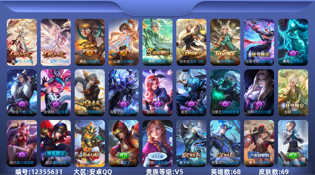 游戏区服:王者荣耀 / 安卓系统 / QQ账号