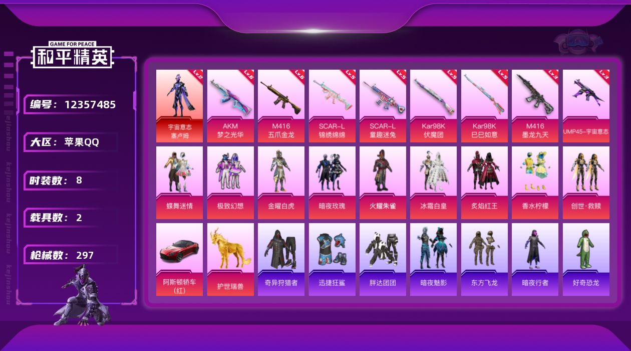 【10888834】【可二次】【苹果QQ】龟仙人 S686-奇异狩猎者 M416-五爪金龙 金曜白虎 漫步者 炙焰红王 M24-奇异狩猎者 东方飞龙 宇宙意志-塞卢姆 忍者信条 M762-奇异狩猎者 夜幕颂歌飞行器 SCAR-童趣迷兔 瑞龙福将 AWM-激战未来 蝶舞迷情 Kar98K-伏魔团 98K-伏魔团 胖达团团 团圆交子 火耀朱雀 迅捷狂鲨 暗夜契约 奇异狩猎者 M762-瑞龙福将 齐天