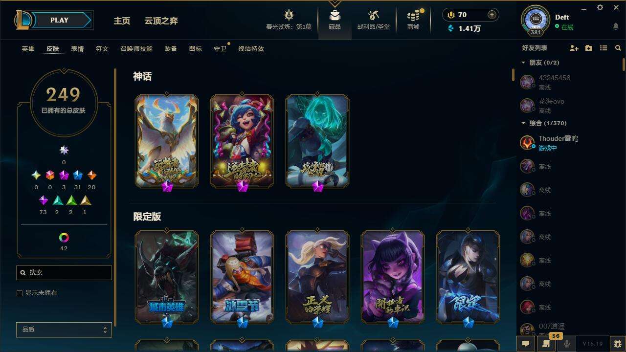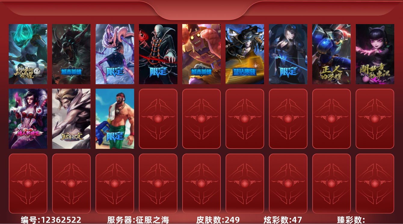 【10889906】[12362522]【gpz_961886】 t27587【征服之海】249皮肤 47炫彩 3神话/31限定/20传说/171英雄 账号等级:381 单双排段位:翡翠【重要头像】爱情之歌 救生圈 【重要皮肤】胜利女神娑娜 胜利之王泰达米尔 胜利巨口克格莫 哥特萝莉安妮 天龙之子斯莫德 胜利女神瑟庄妮 胜利之树茂凯 胜利机器人布里茨 胜利女神奥莉安娜 胜