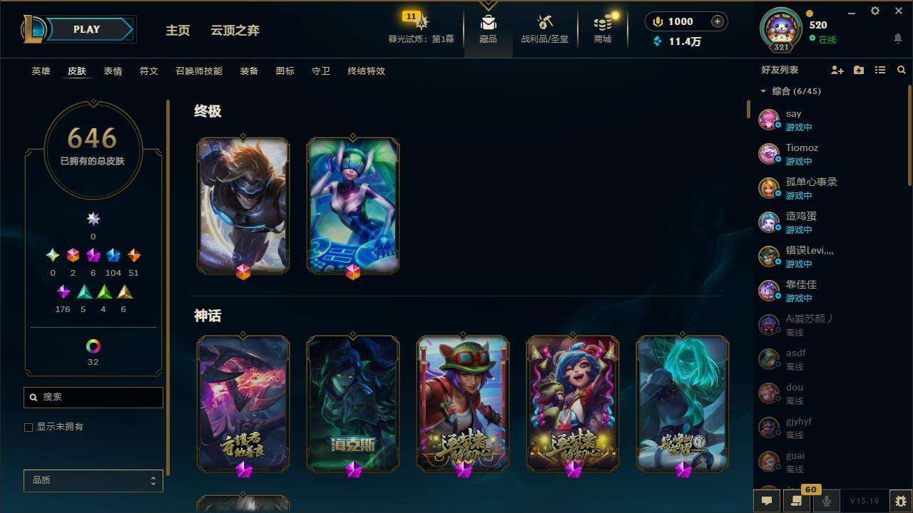 【10890899】[12367571]【gpz_961963】 t27711【黑色玫瑰】原皮龙瞎 646皮肤 52炫彩 4臻彩 6神话/104限定/51传说/170英雄 账号等级:321 云顶神话:3 单双排段位:黄金【重要头像】女巫头 云顶古琴娑娜 心型钥匙 觅心之翼奎因 击拳 烈焰美人薇恩 披萨鸡 【重要皮肤】黑夜使者李青至臻 暗星科加斯 摄魂使者薇恩 胜利女神希维尔