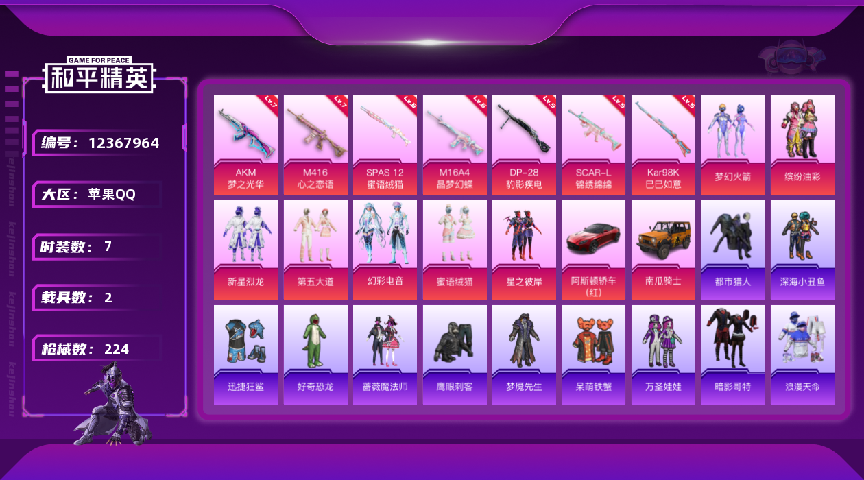 【10891028】【不可二次】【苹果QQ】龟仙人 漫步者 都市猎人 新星烈龙 星之彼岸 M416-仓鼠灰灰 M416-心之恋语 缤纷油彩 深海小丑鱼 M24-香水柠檬 瑞龙福将 浪漫天命 团圆交子 南瓜车 迅捷狂鲨 M762-瑞龙福将 狂沙舞者 SCAR-L-锦绣绵绵 梦幻火箭 AKM-梦之光华 阿斯顿马丁S红色 AKM-缤纷海域 AUG-魔法学院 暗影哥特 雪山精英 星之信仰飞行翼