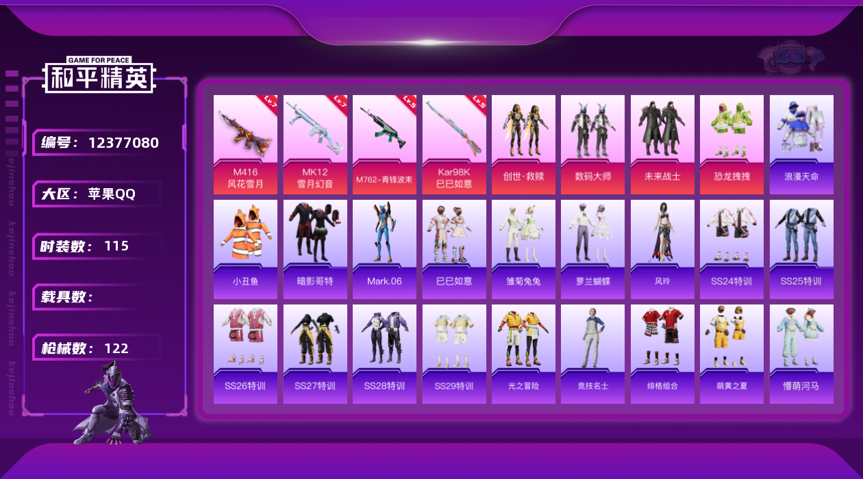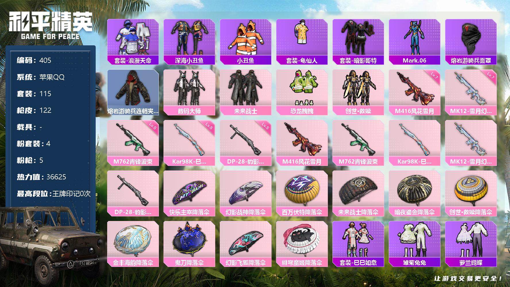 游戏区服:和平精英 / 苹果系统 / QQ帐号