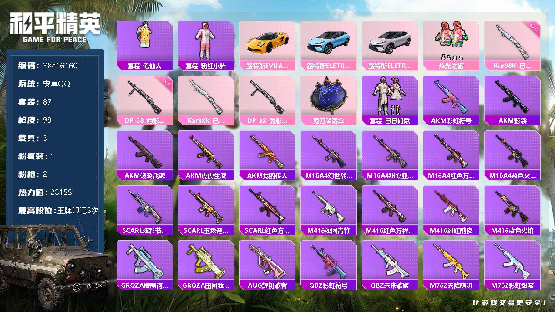 游戏区服:和平精英 / 安卓系统 / QQ账号