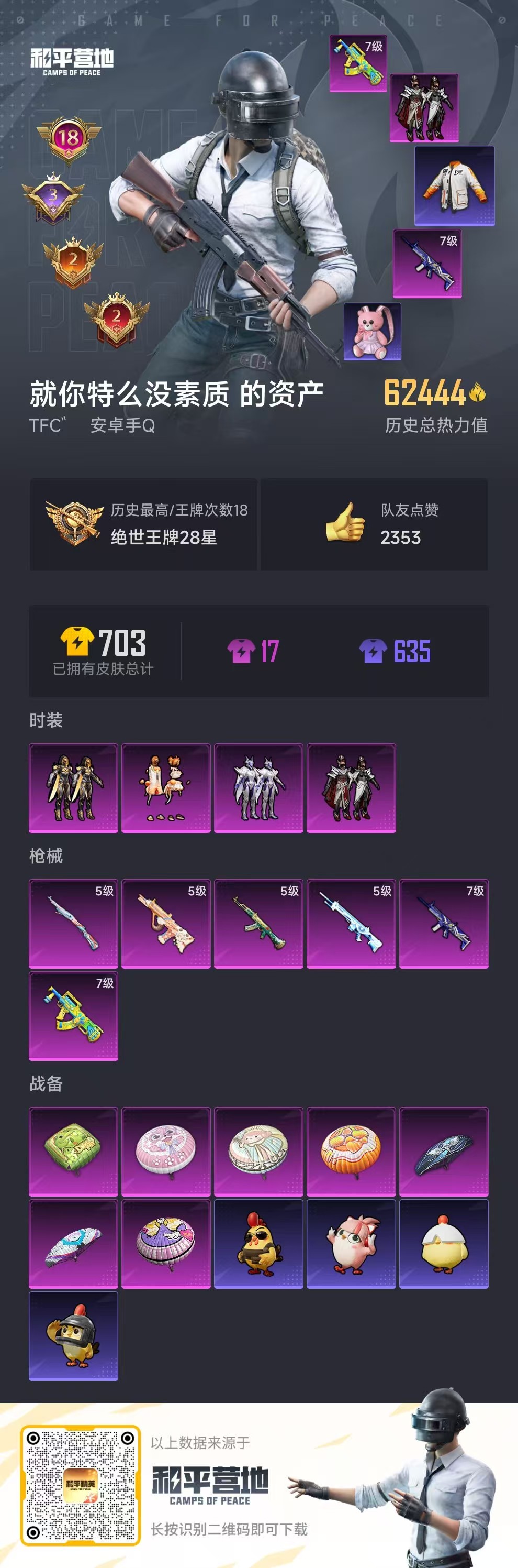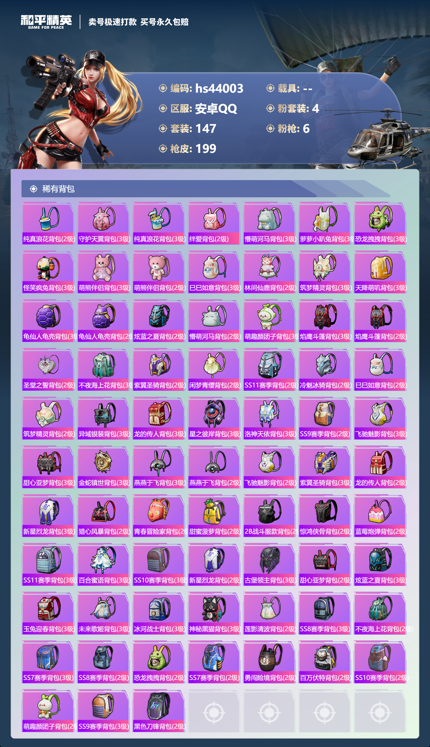 游戏区服:和平精英 / 安卓系统 / QQ账号
