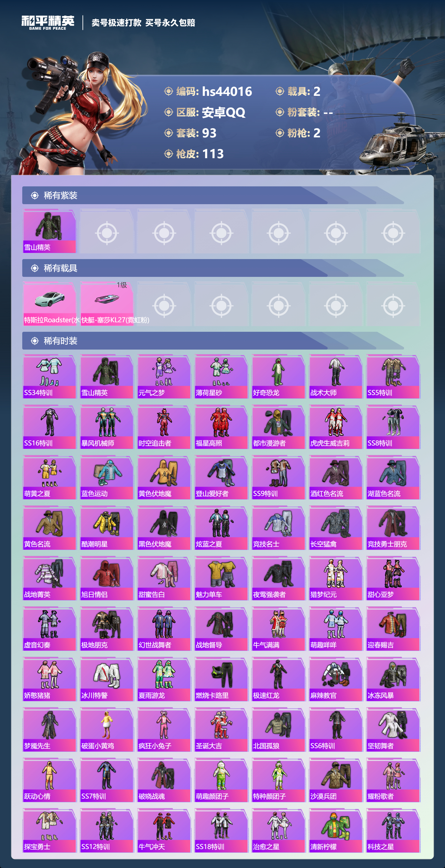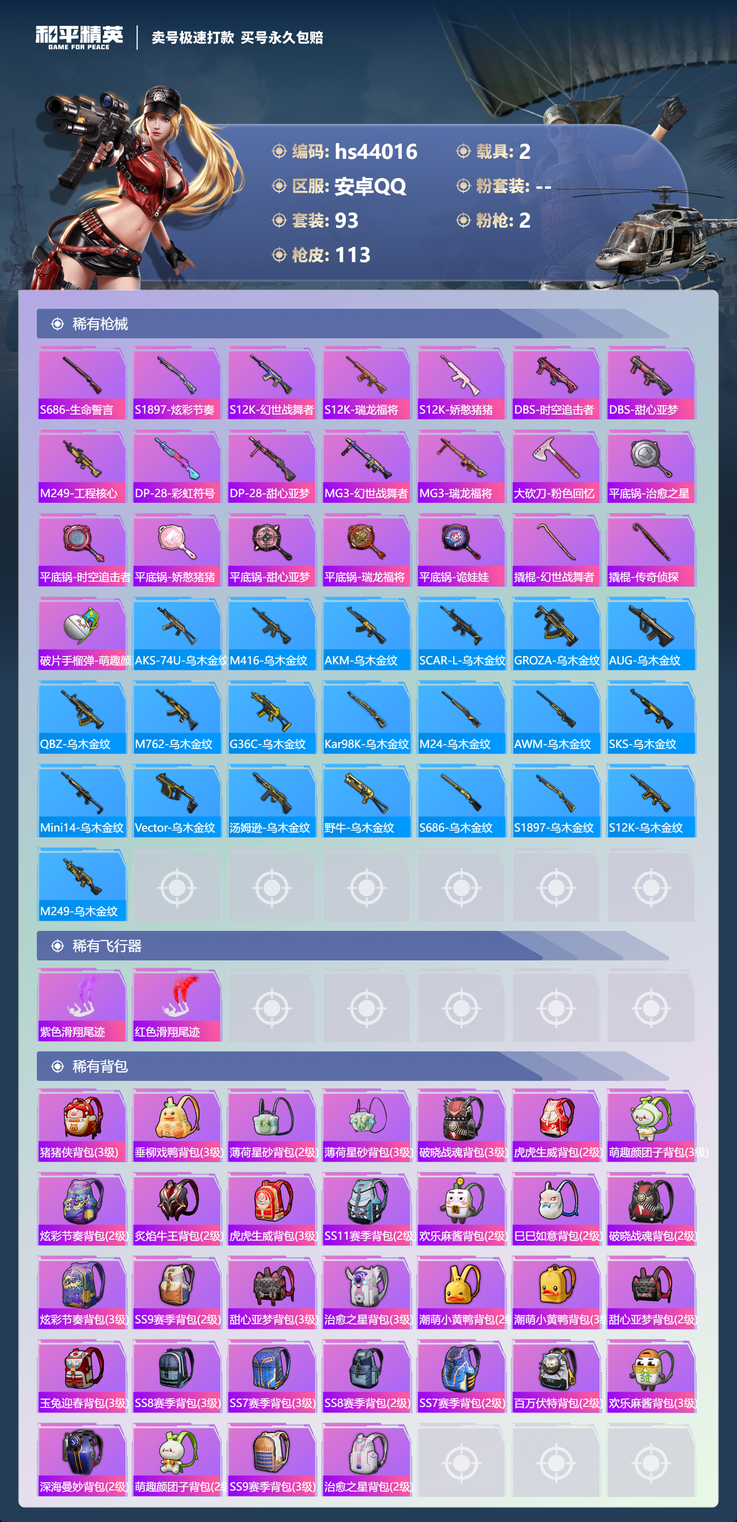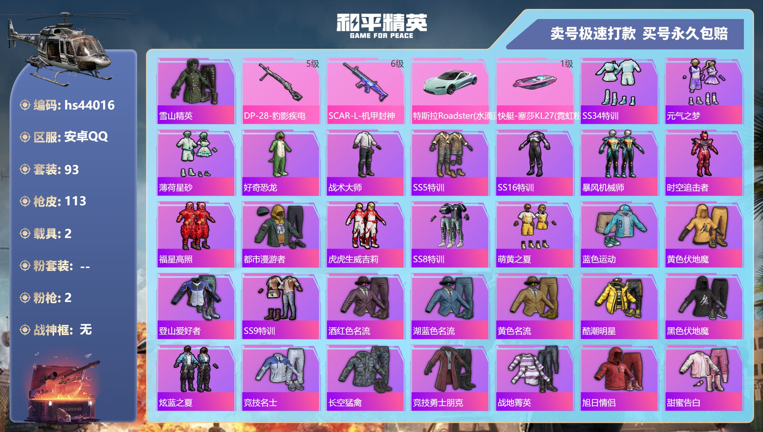 游戏区服:和平精英 / 安卓系统 / QQ账号