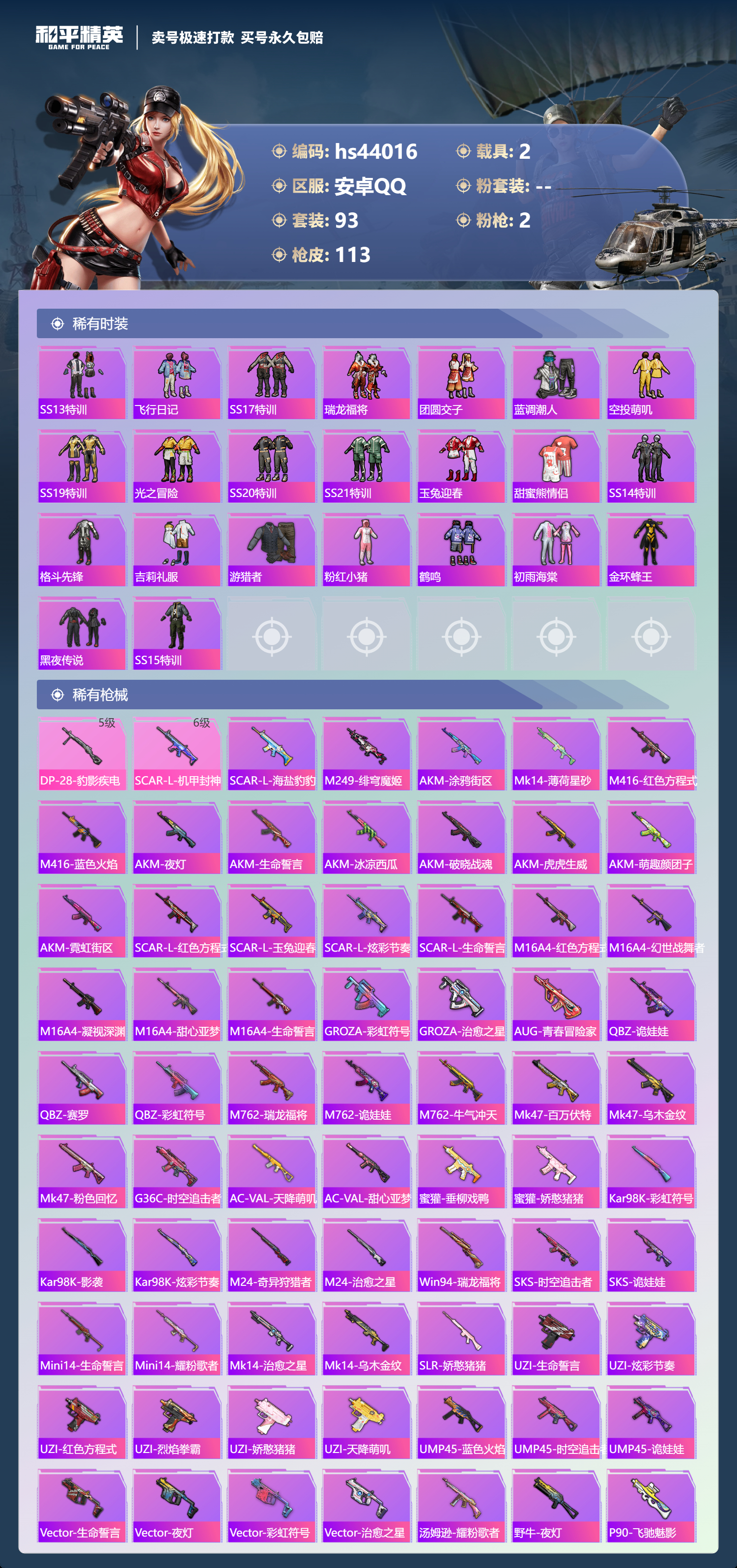 【10893063】【不可二次】【安卓QQ】SCAR-L-机甲封神 塞莎霓虹粉 M24-奇异狩猎者 M762-瑞龙福将 粉红小猪 瑞龙福将 SCAR-机甲封神 特斯拉R水滴蓝 极速红龙 雪山精英 团圆交子