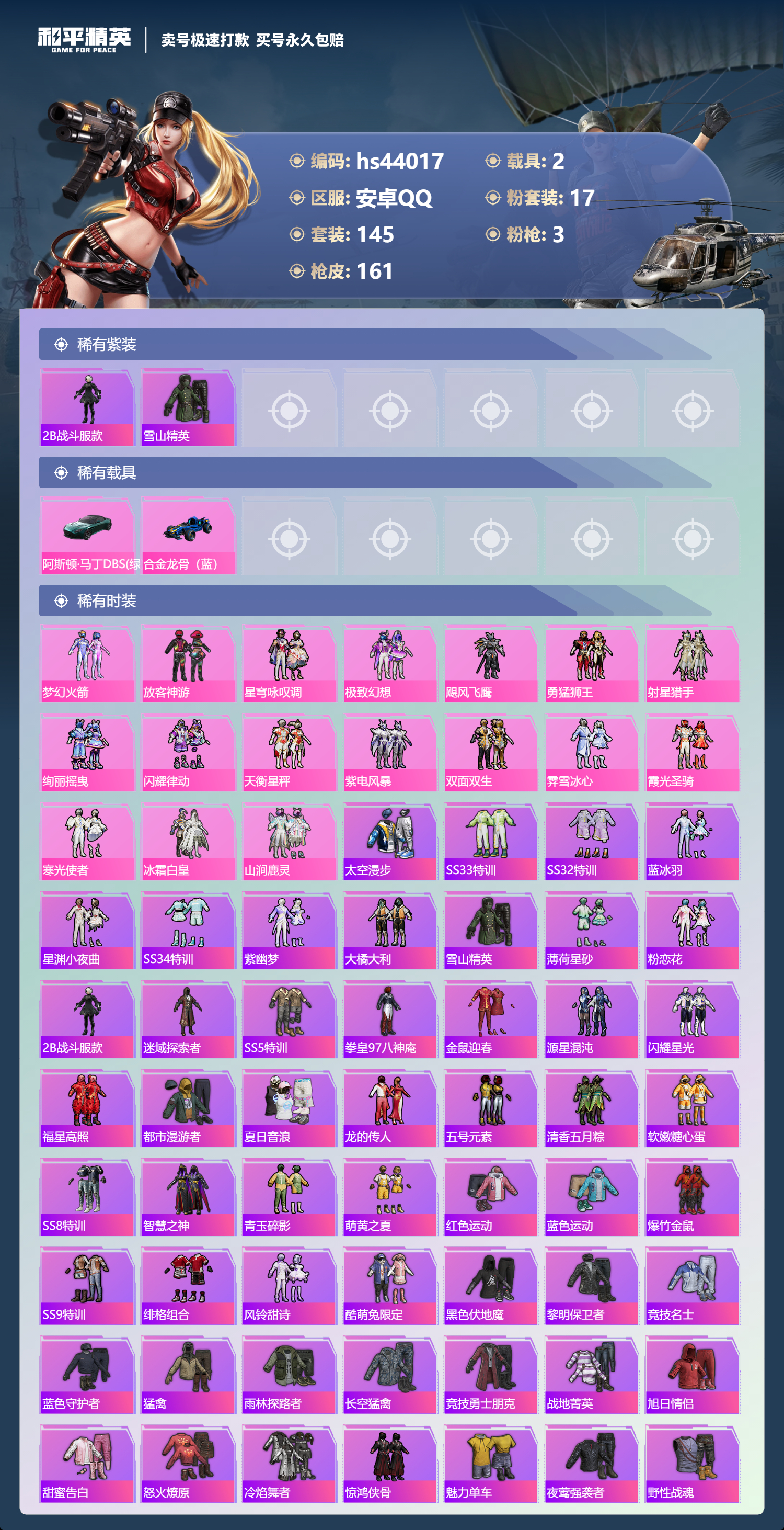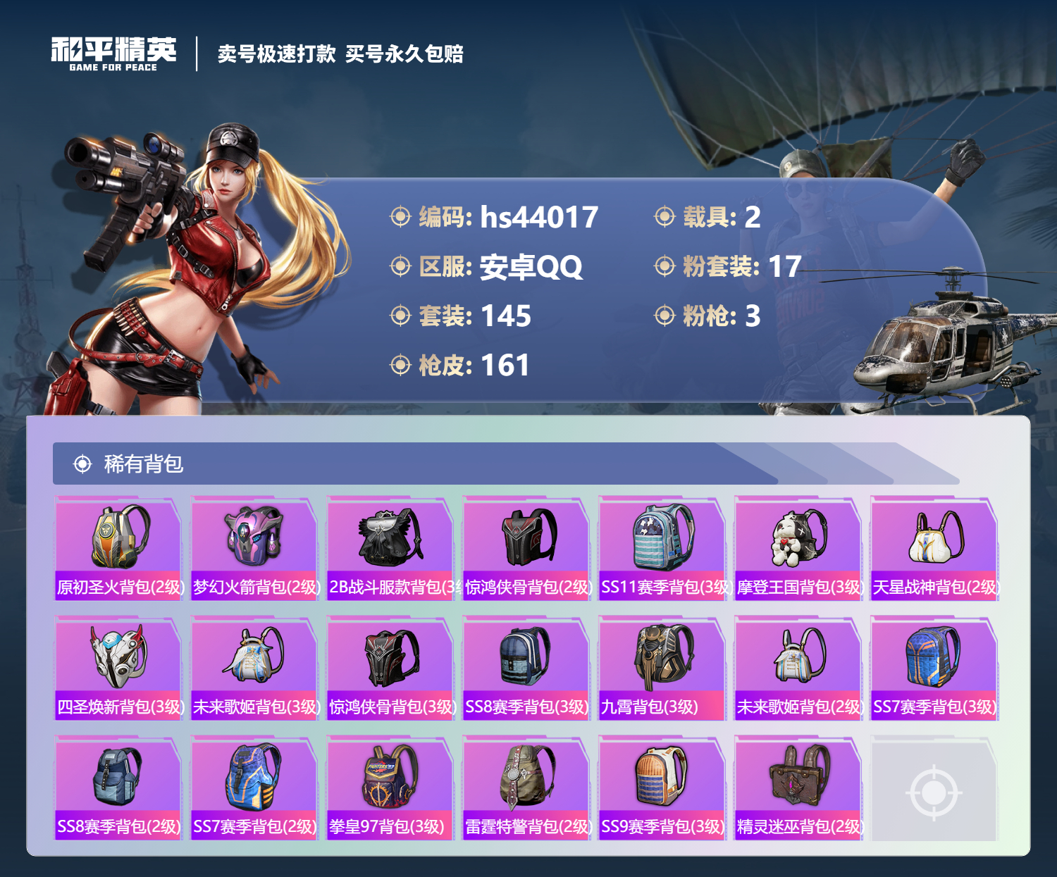 游戏区服:和平精英 / 安卓系统 / QQ账号