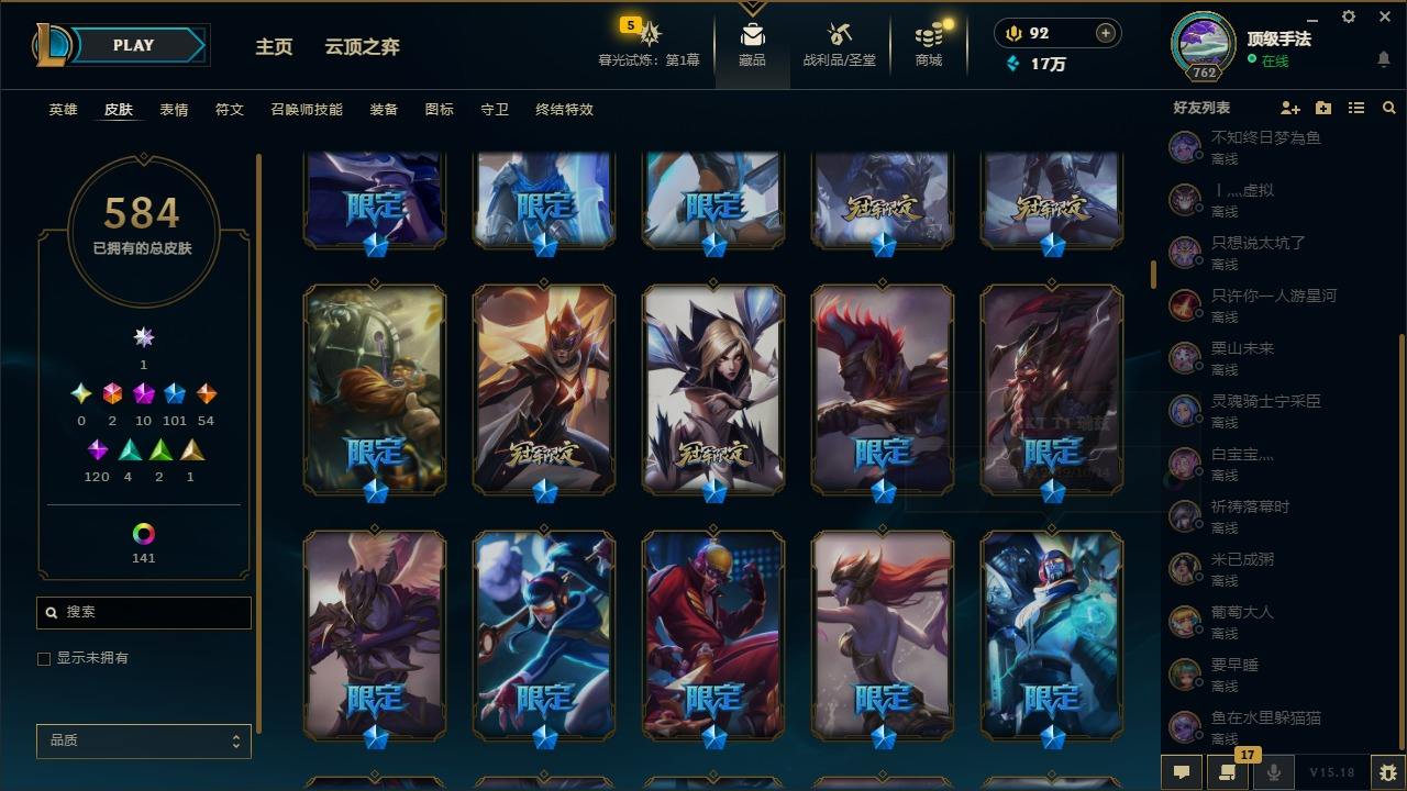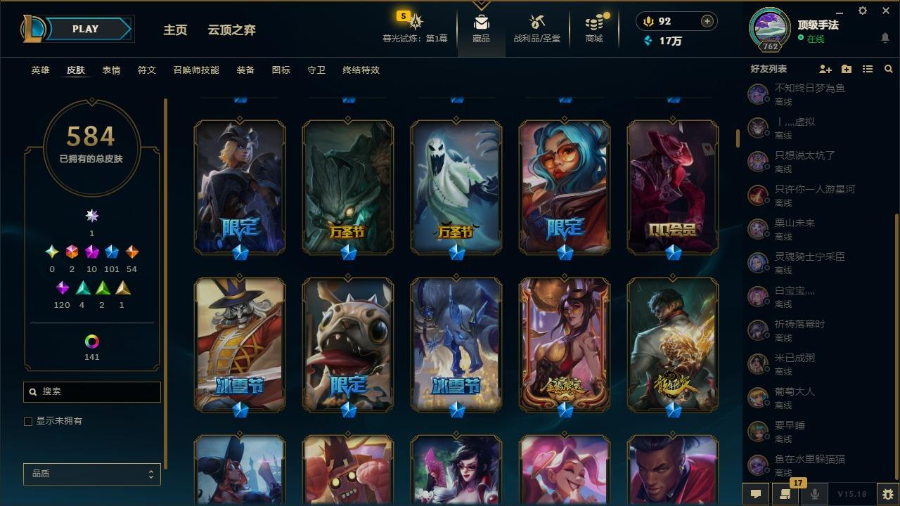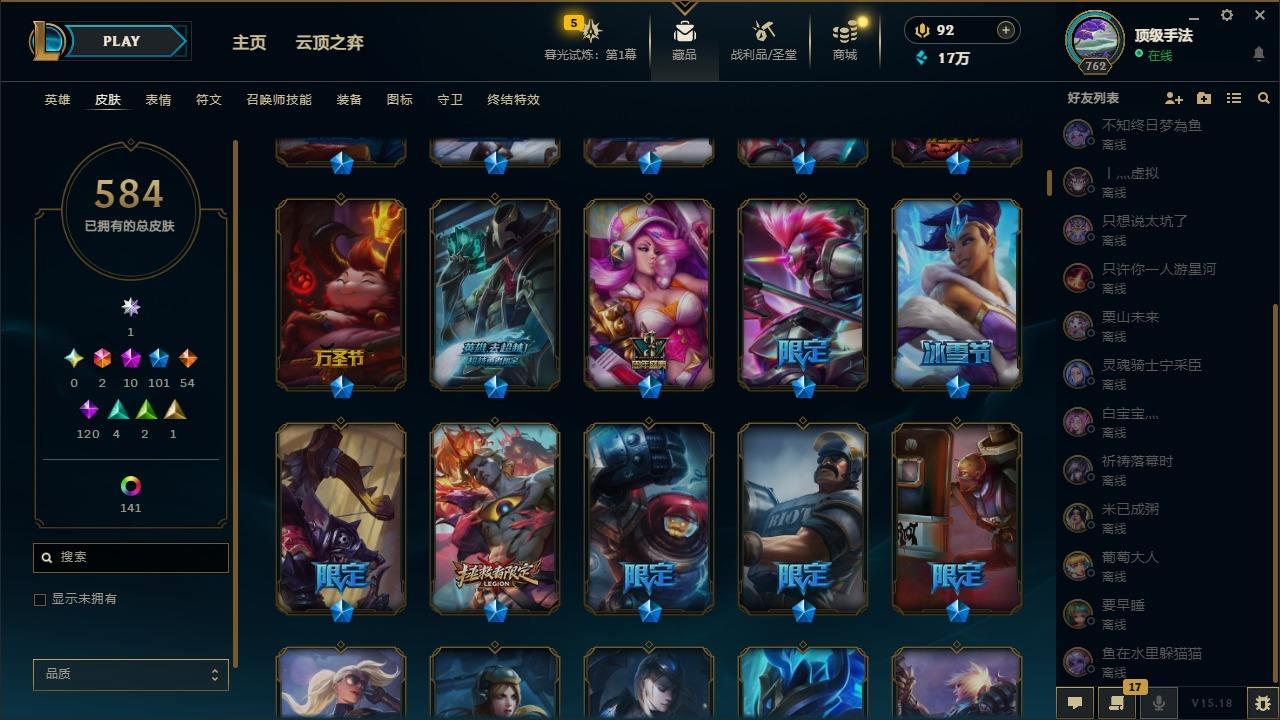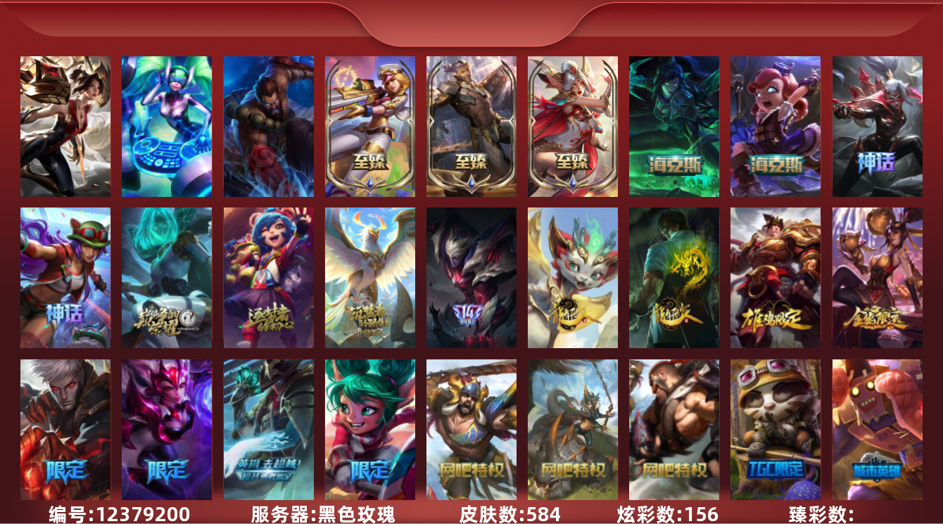 【10893250】[12379200]2终极 10神话 101限定 54传说 120史诗 584皮肤 156炫彩 171英雄 可二次 可修改实名 优质装备:至臻 电玩女神 凯特琳,至臻 原计划:逆流 塞拉斯,源代码 乐芙兰,防爆天使 凯尔,巧克力工坊 波比,地底世界 崔斯特,电玩战魂 人马,都铎王朝 图奇,防爆机器人 布里茨,防爆士兵 炼金,防爆士兵 格雷福斯,冠军之箭 艾希,冠军之矛 滑板鞋