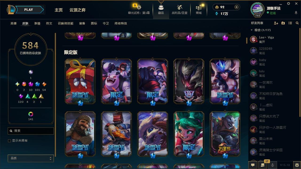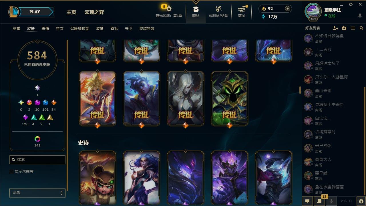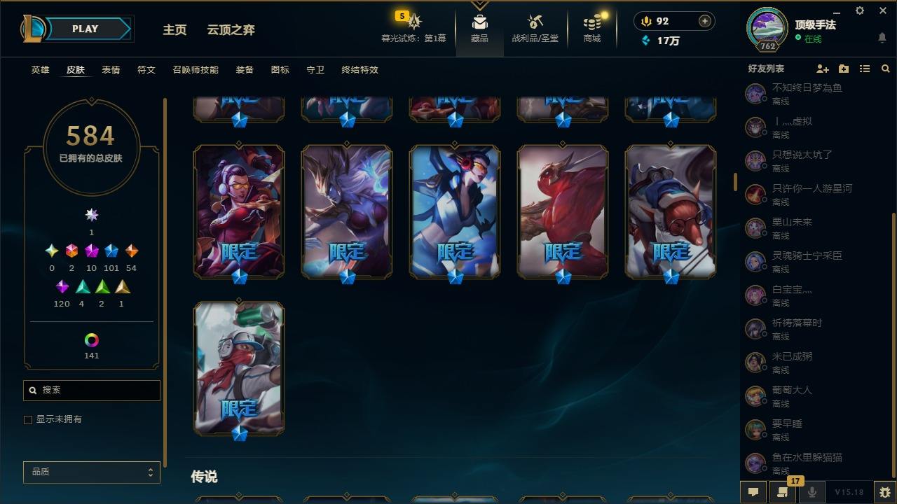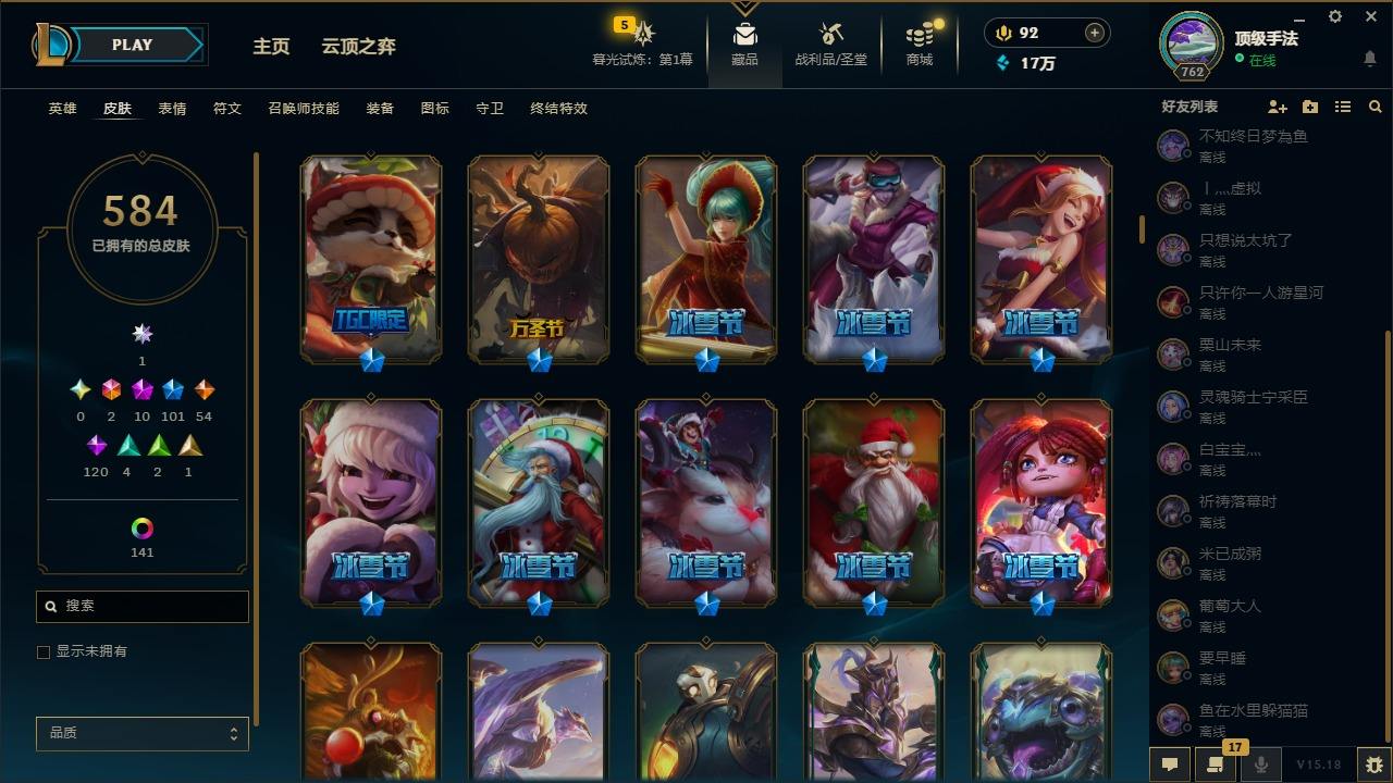 【10893250】[12379200]2终极 10神话 101限定 54传说 120史诗 584皮肤 156炫彩 171英雄 可二次 可修改实名 优质装备:至臻 电玩女神 凯特琳,至臻 原计划:逆流 塞拉斯,源代码 乐芙兰,防爆天使 凯尔,巧克力工坊 波比,地底世界 崔斯特,电玩战魂 人马,都铎王朝 图奇,防爆机器人 布里茨,防爆士兵 炼金,防爆士兵 格雷福斯,冠军之箭 艾希,冠军之矛 滑板鞋