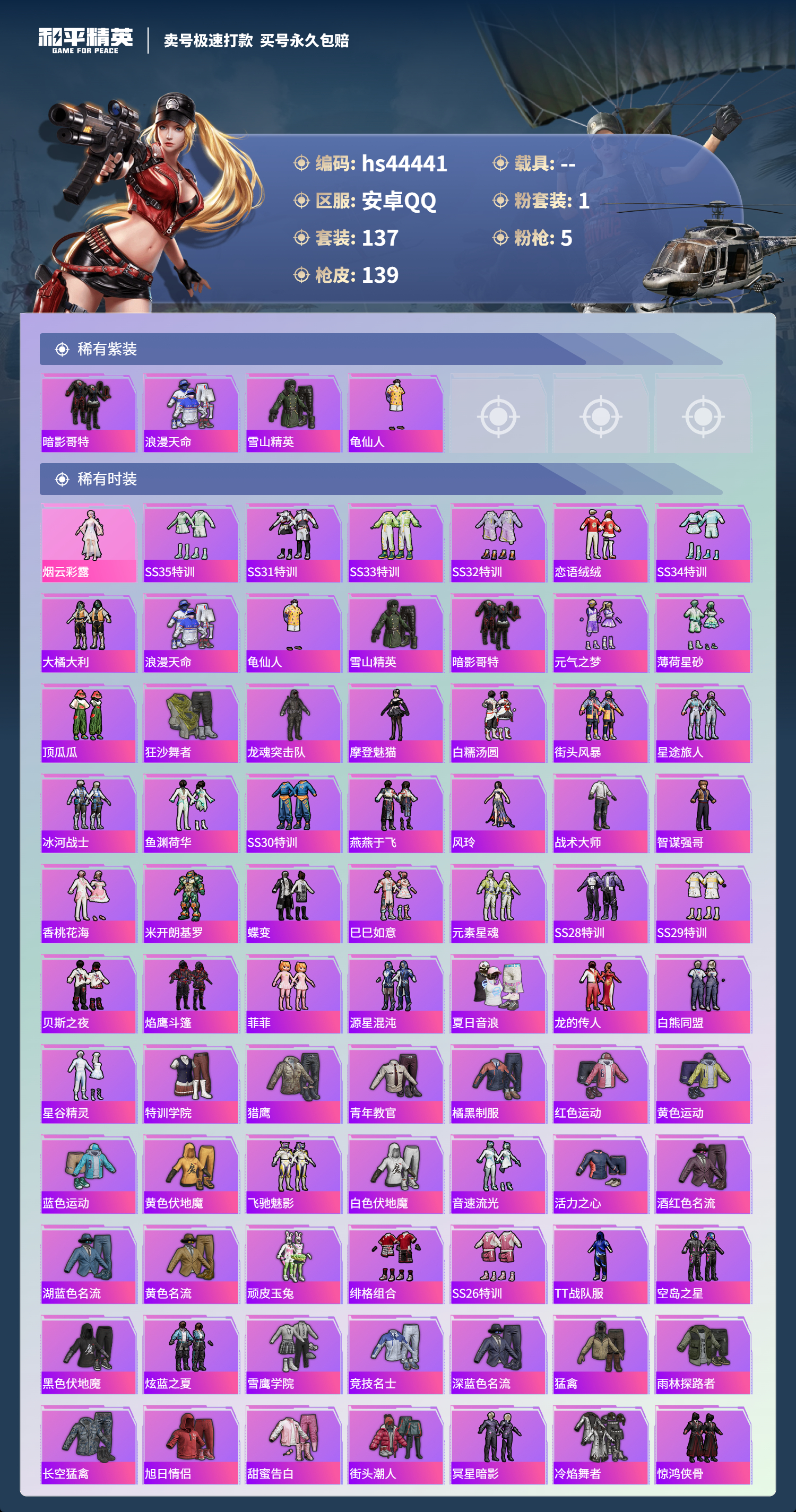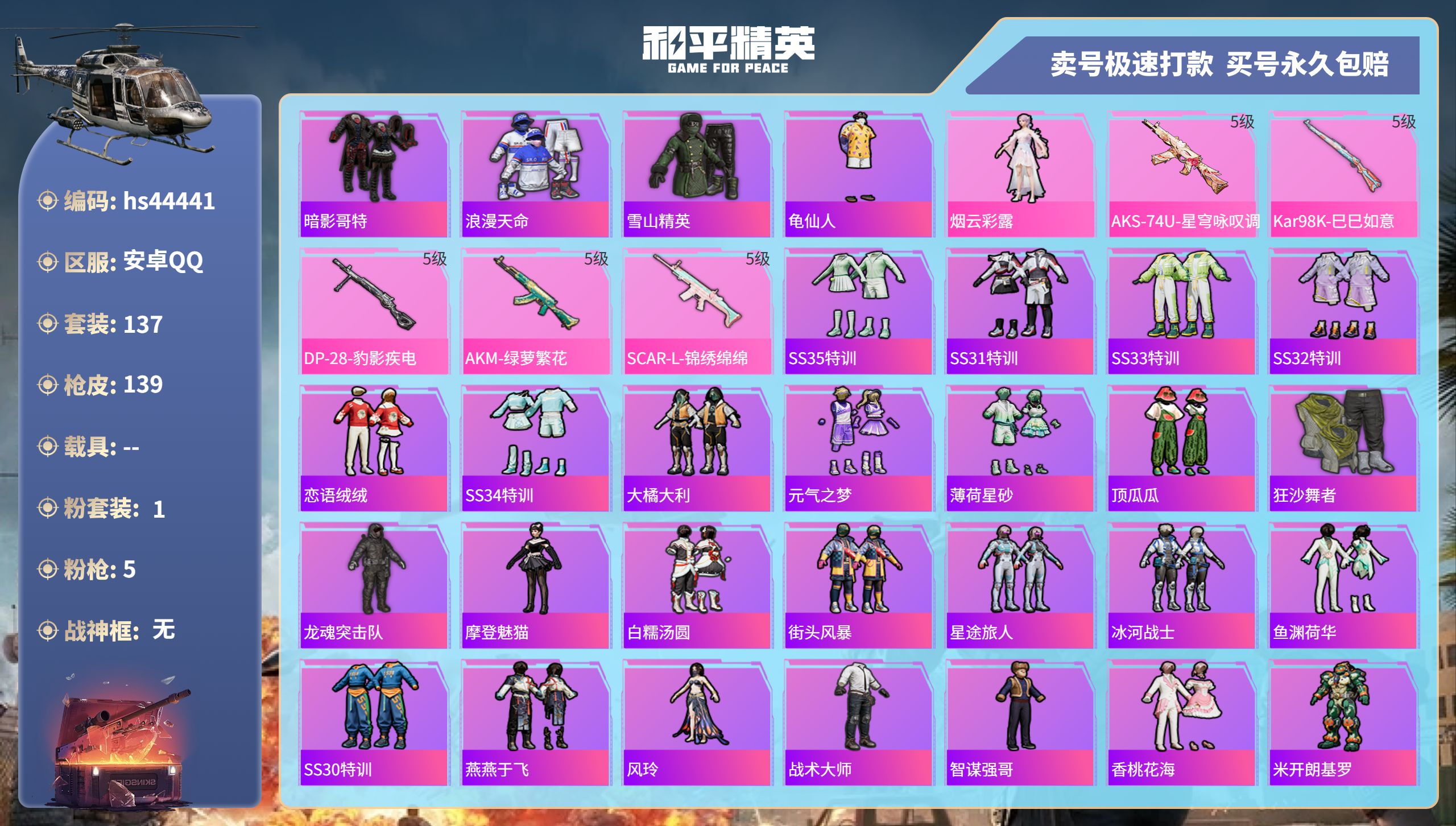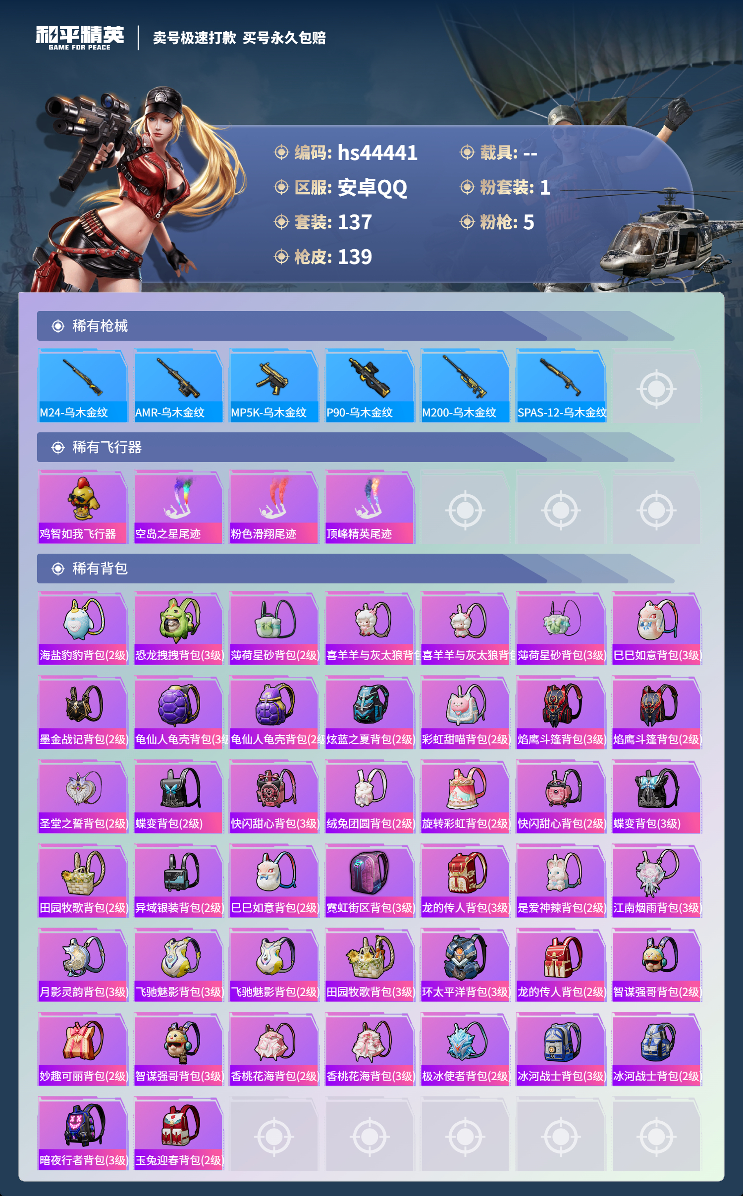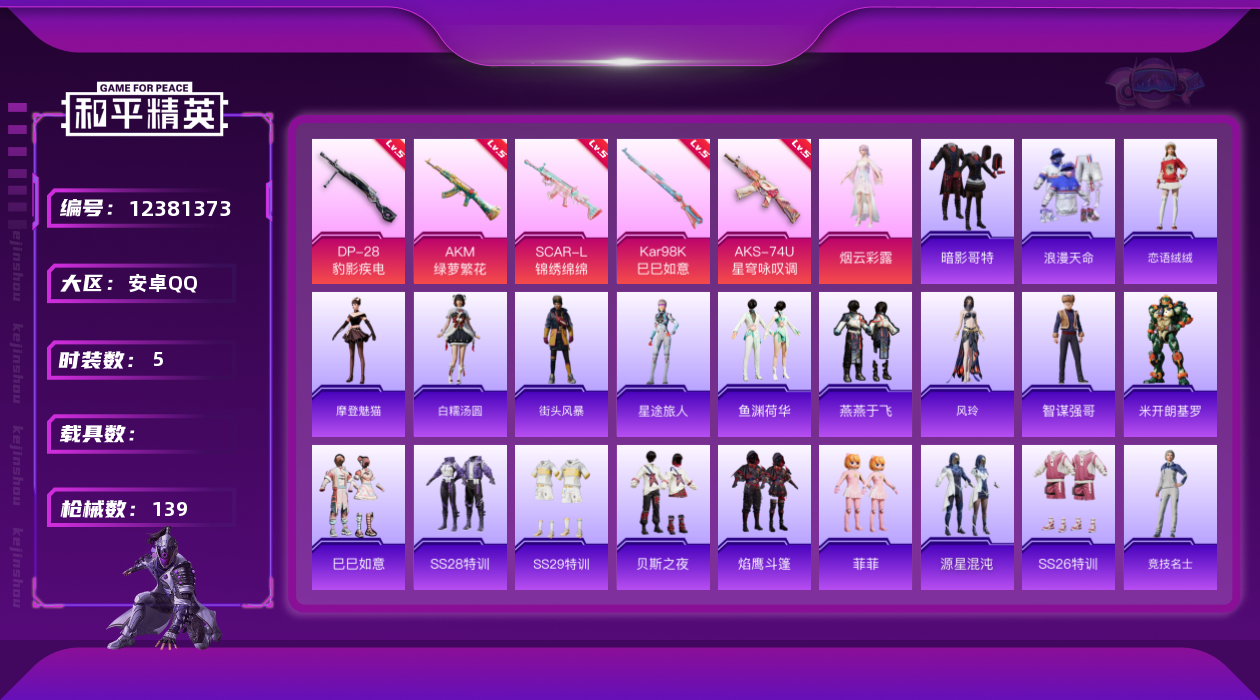 游戏区服:和平精英 / 安卓系统 / QQ账号