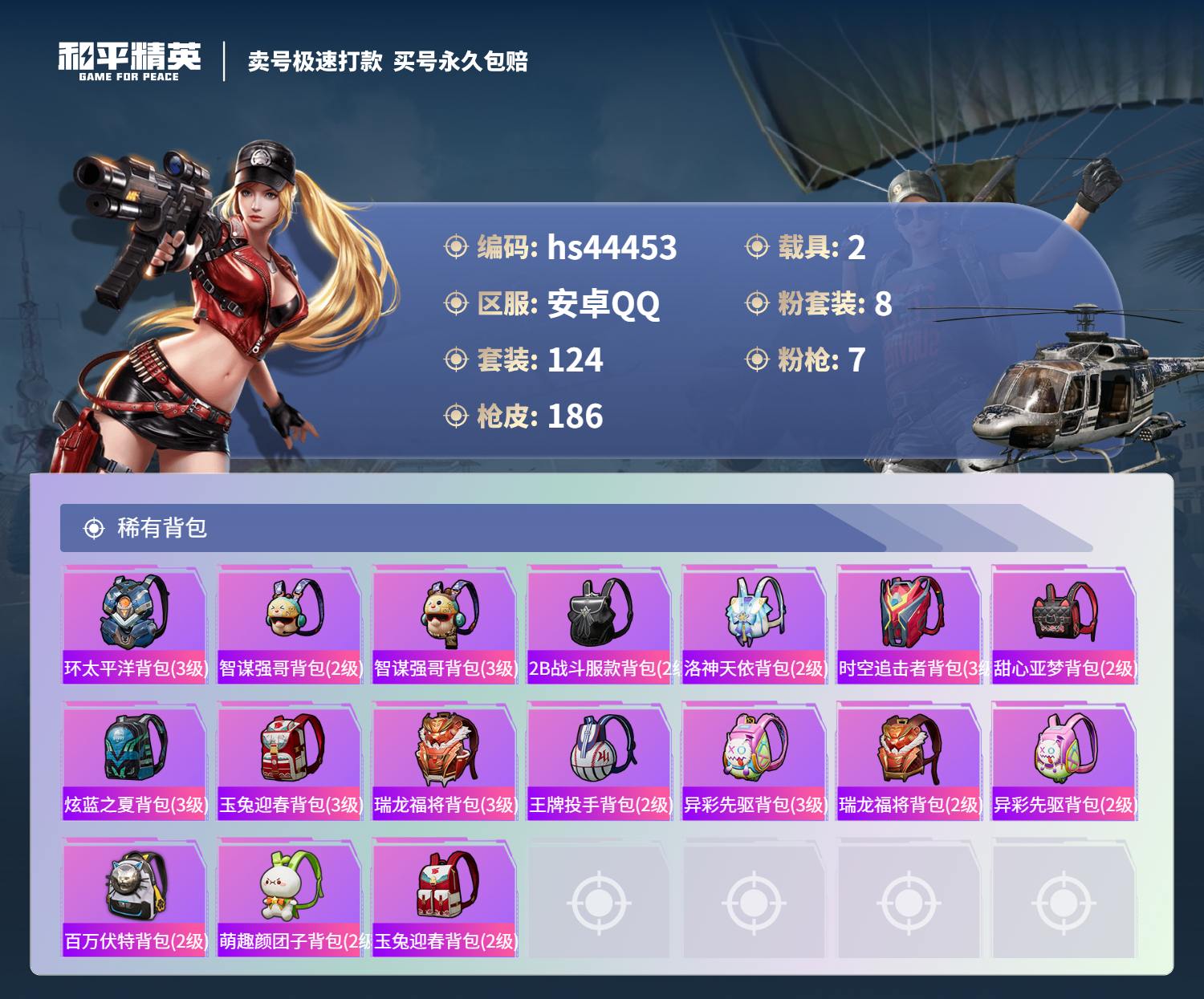 游戏区服:和平精英 / 安卓系统 / QQ账号