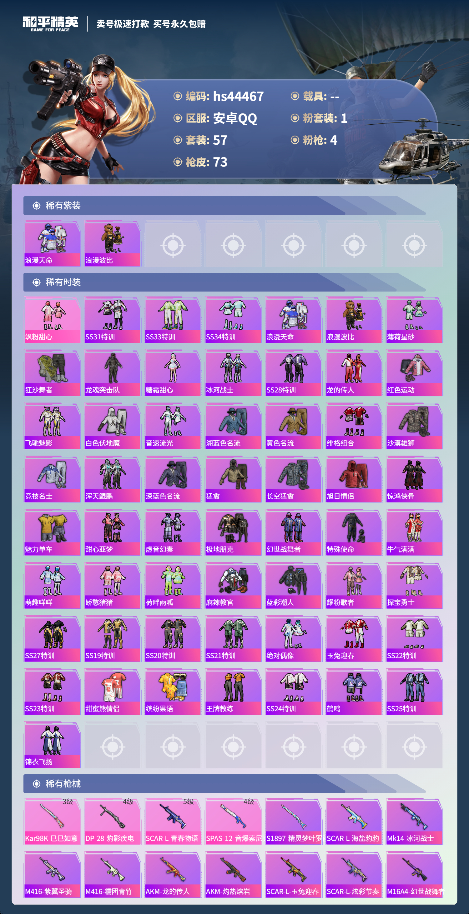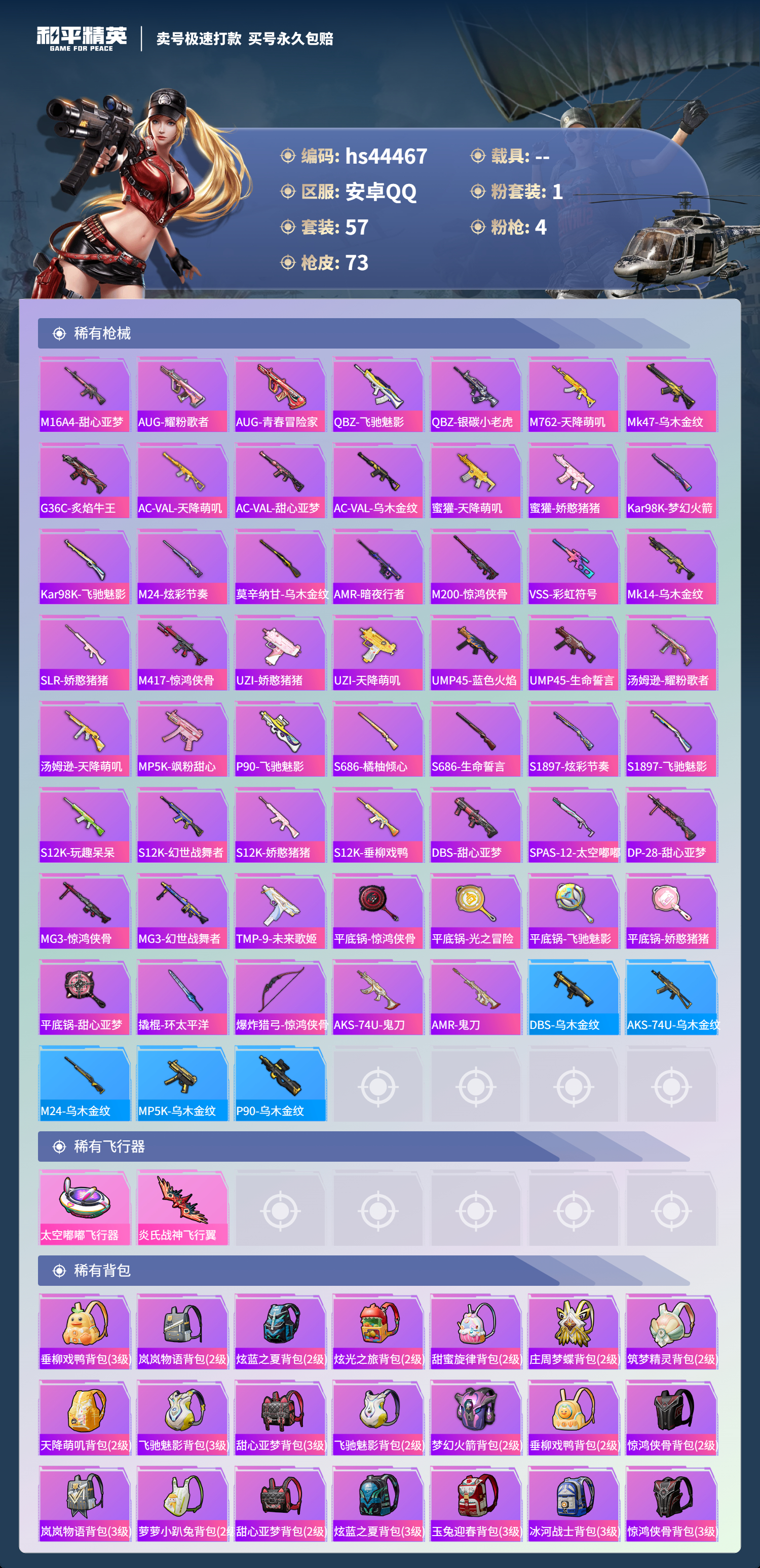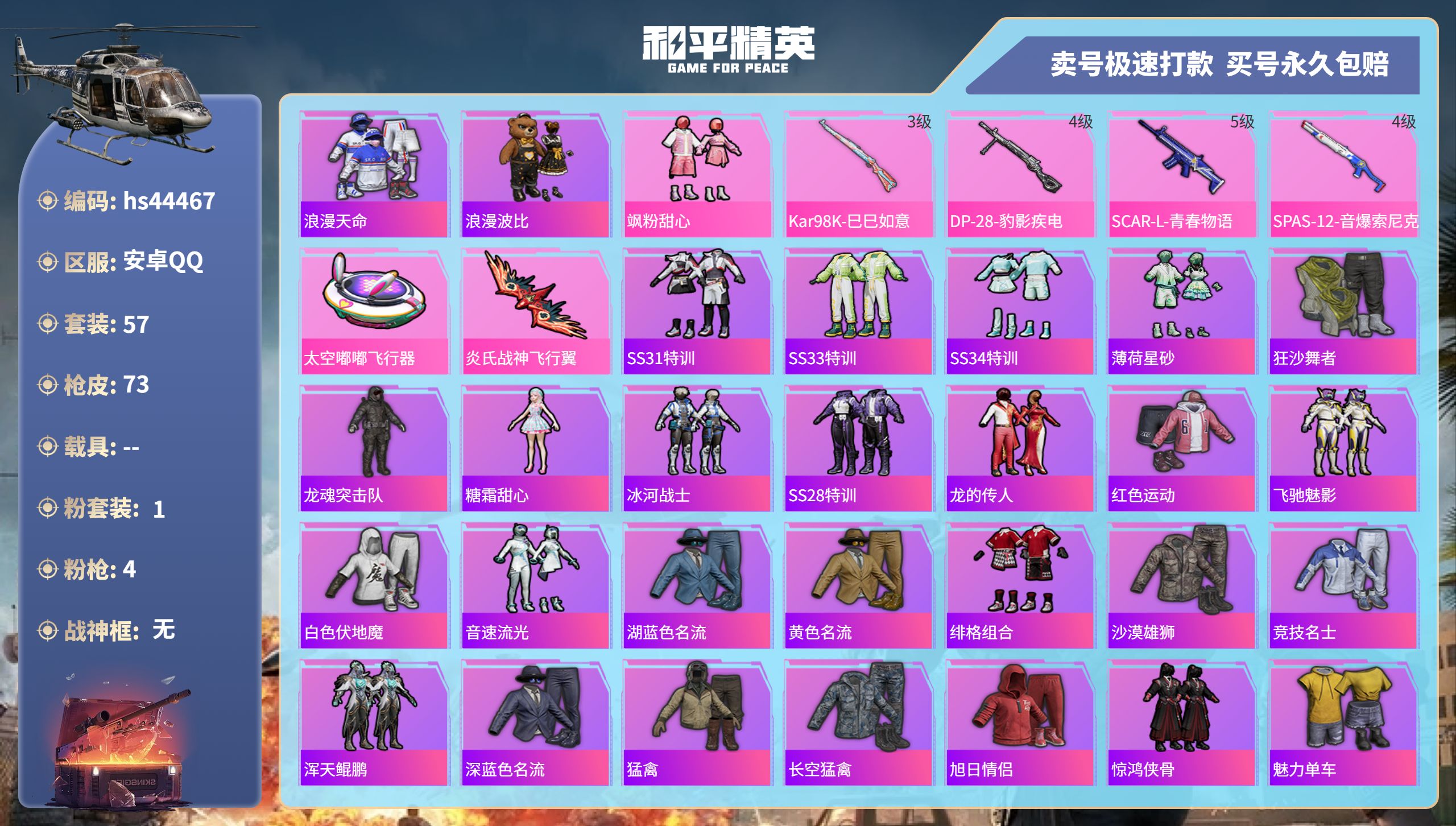 游戏区服:和平精英 / 安卓系统 / QQ账号