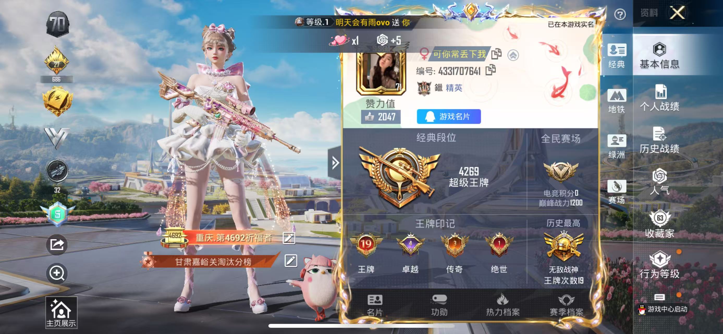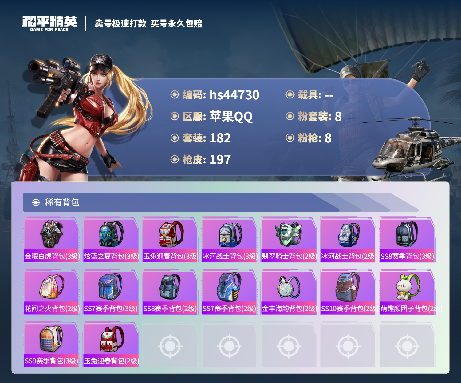 游戏区服:和平精英 / 苹果系统 / QQ帐号