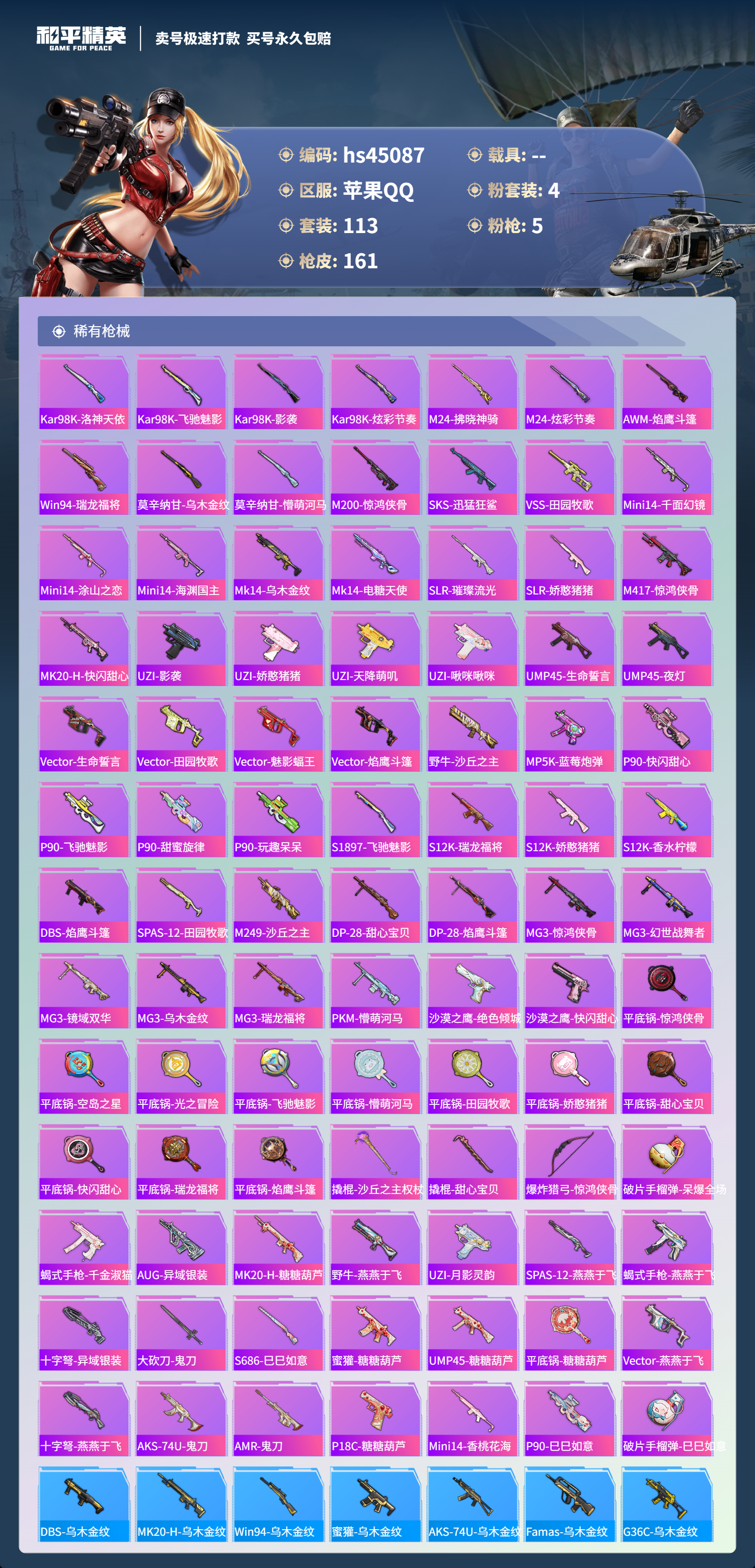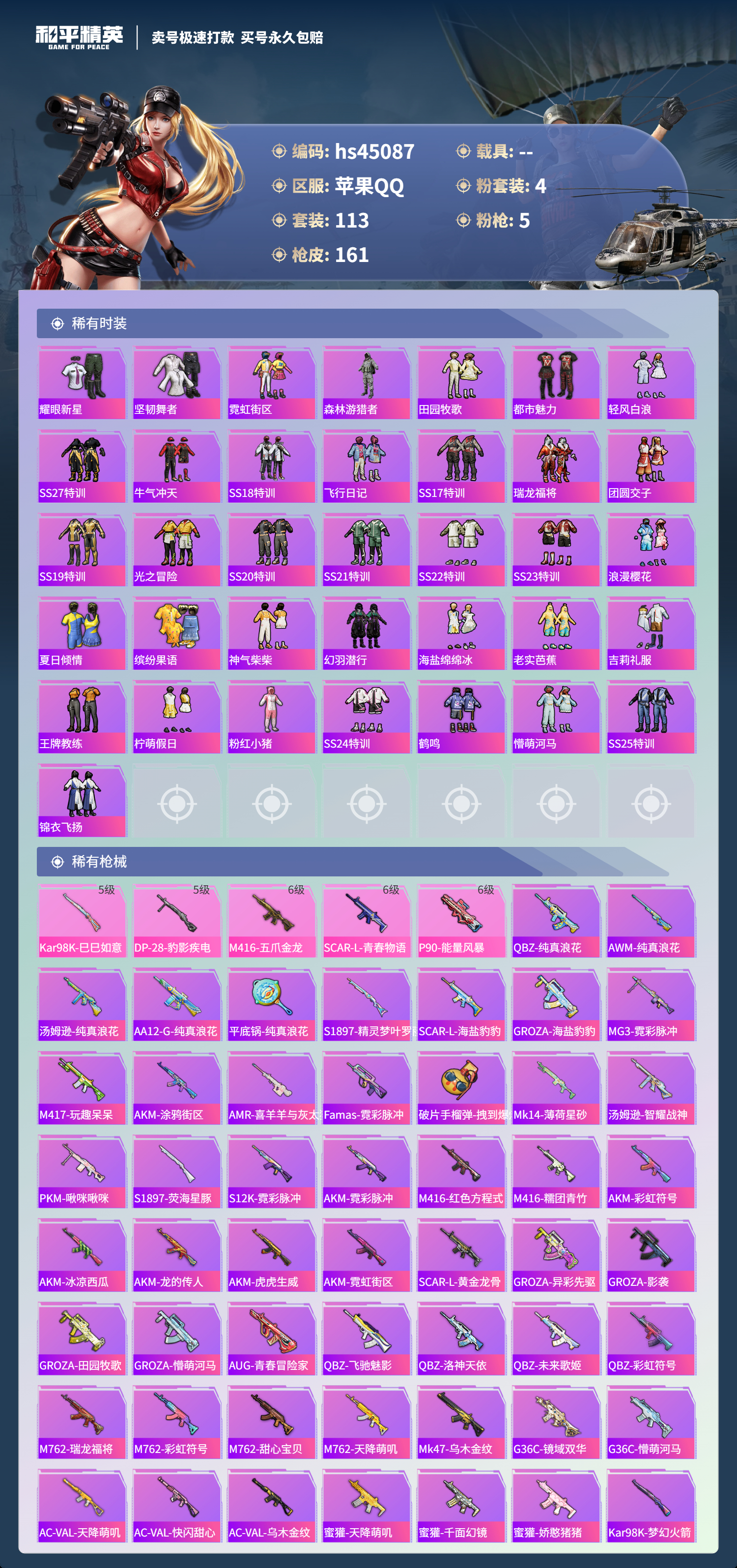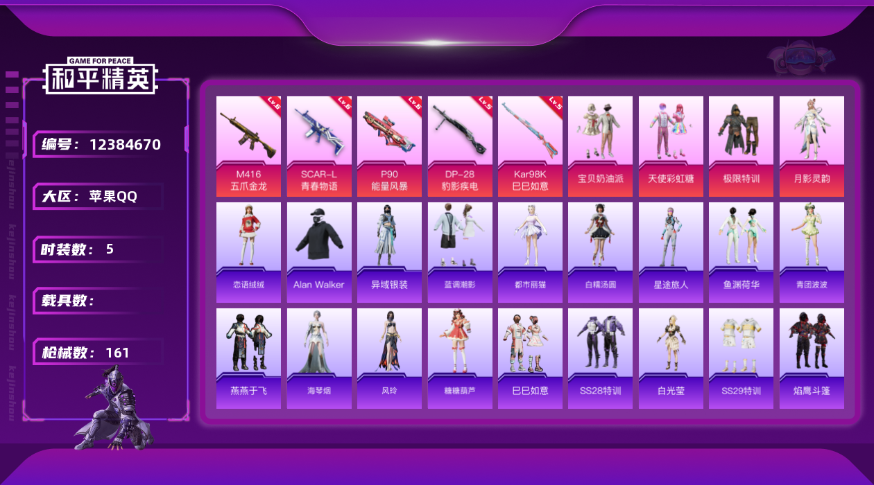 【10894666】【可二次】【苹果QQ】龟仙人 P90-能量风暴 M416-五爪金龙 漫步者 M762-瑞龙福将 极限特训 龙翔九天飞行器 天使彩虹糖 粉红小猪 宝贝奶油派 瑞龙福将 SCAR-L-青春物语 团圆交子