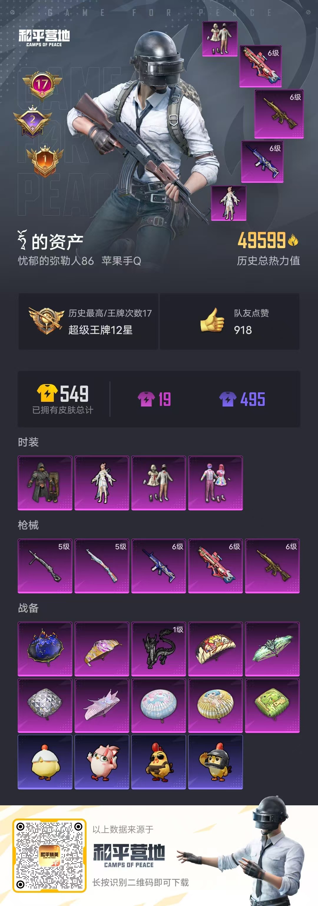 游戏区服:和平精英 / 苹果系统 / QQ帐号
