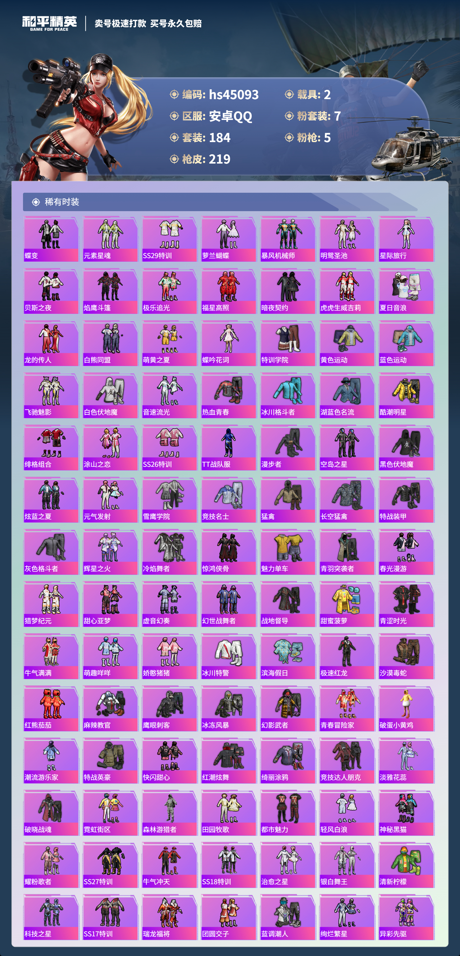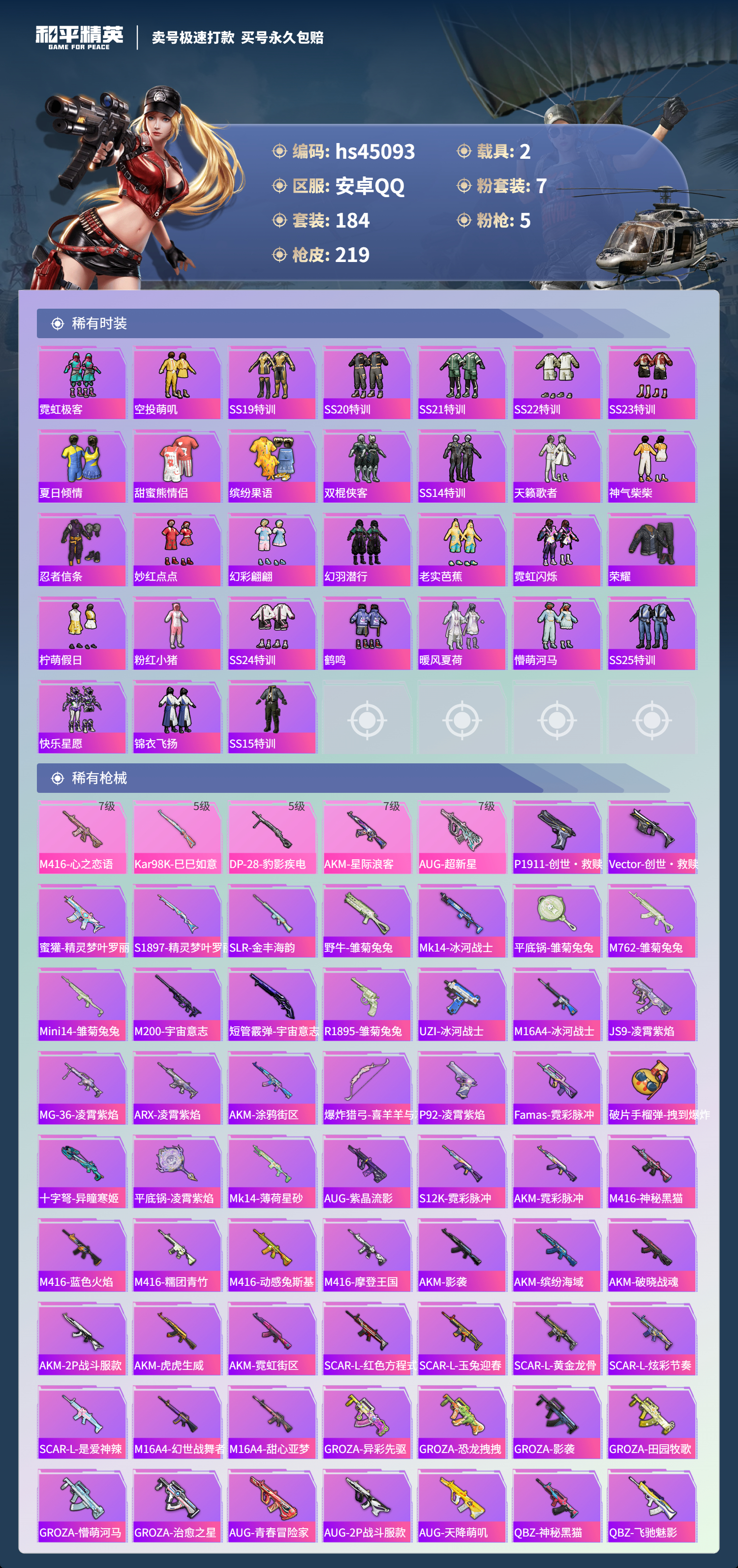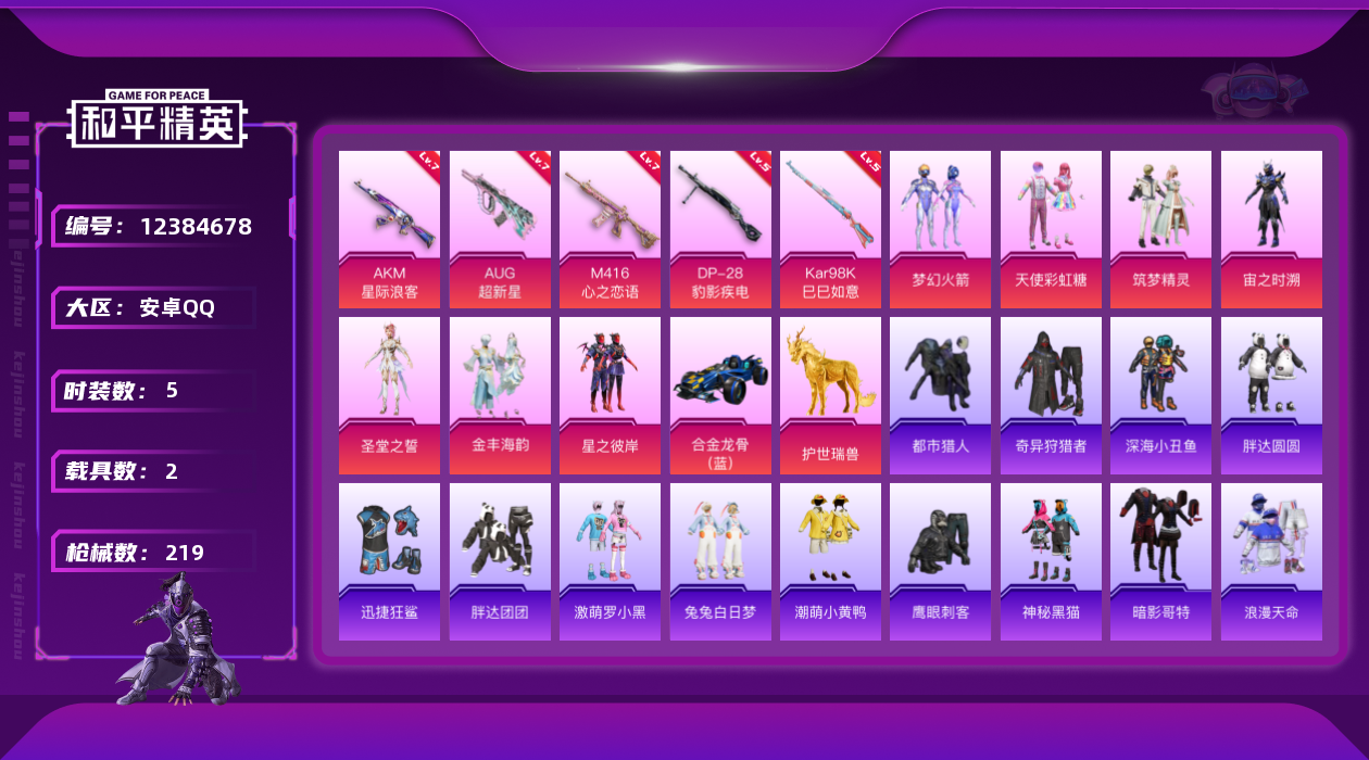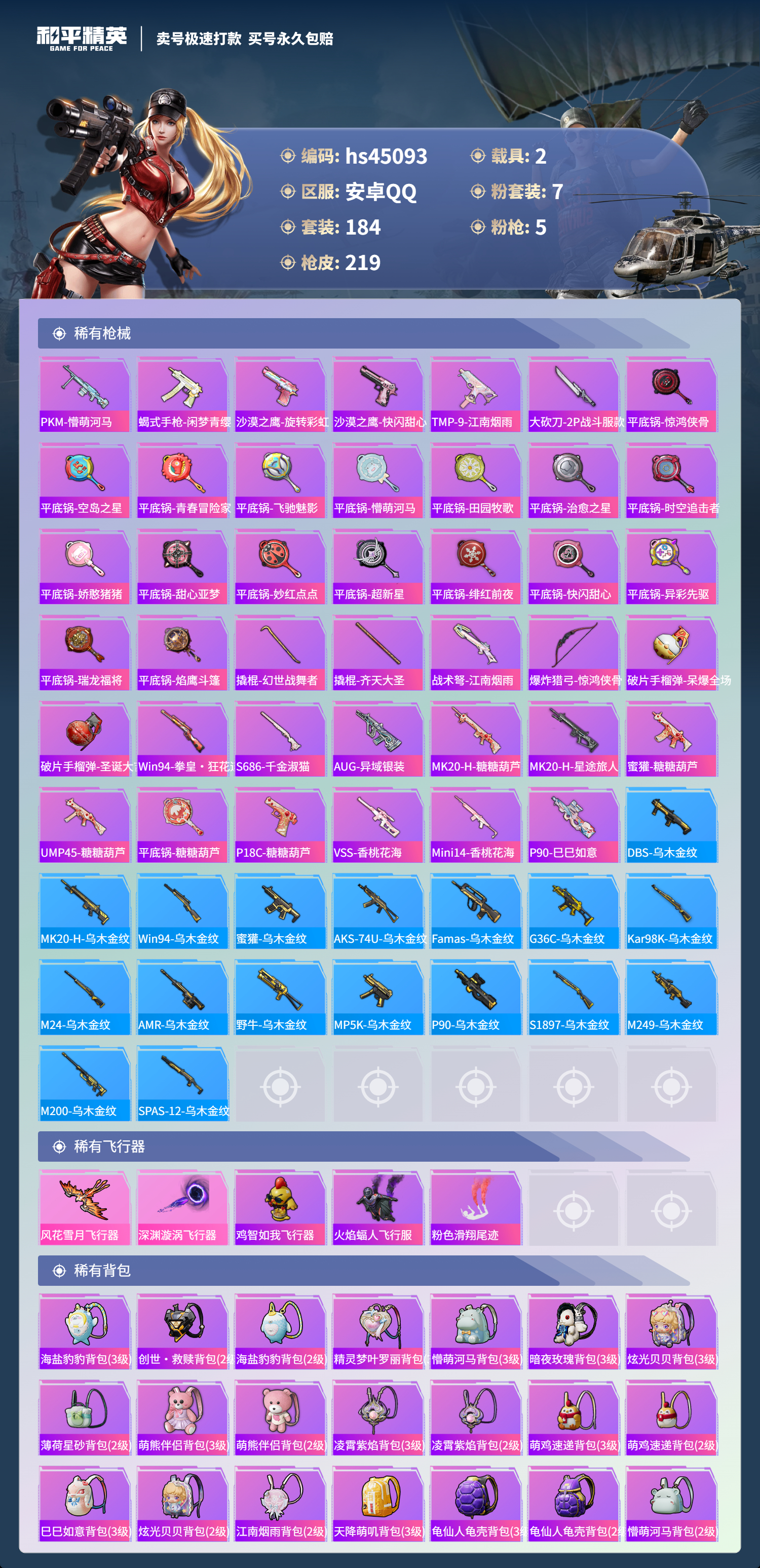 【10894671】【不可二次】【安卓QQ】合金龙骨蓝色 龟仙人 S686-奇异狩猎者 AKM-星际浪客 漫步者 都市猎人 M24-奇异狩猎者 极速红龙 忍者信条 M762-奇异狩猎者 风花雪月飞行器 星之彼岸 M416-心之恋语 深海小丑鱼 瑞龙福将 激萌小黄鸭 浪漫天命 激萌罗小黑 胖达团团 胖达圆圆 团圆交子 红熊茄茄 迅捷狂鲨 暗夜契约 奇异狩猎者 M762-瑞龙福将 AUG-超新星 潮