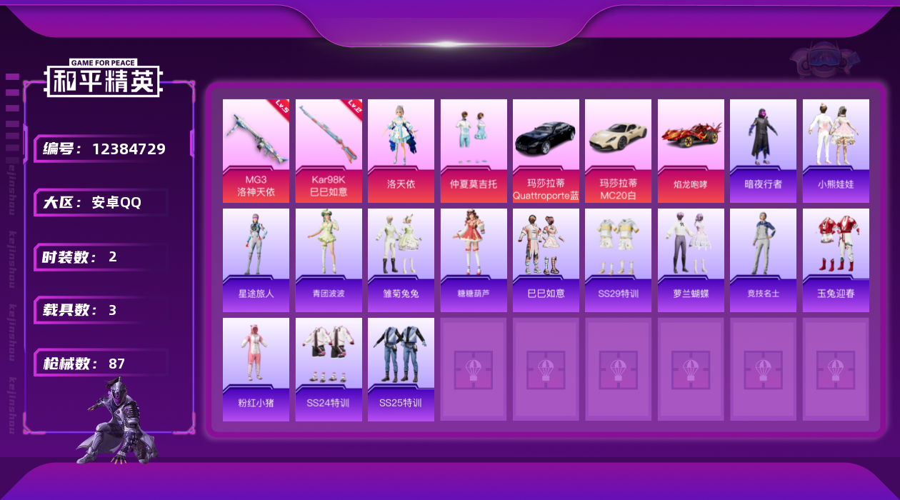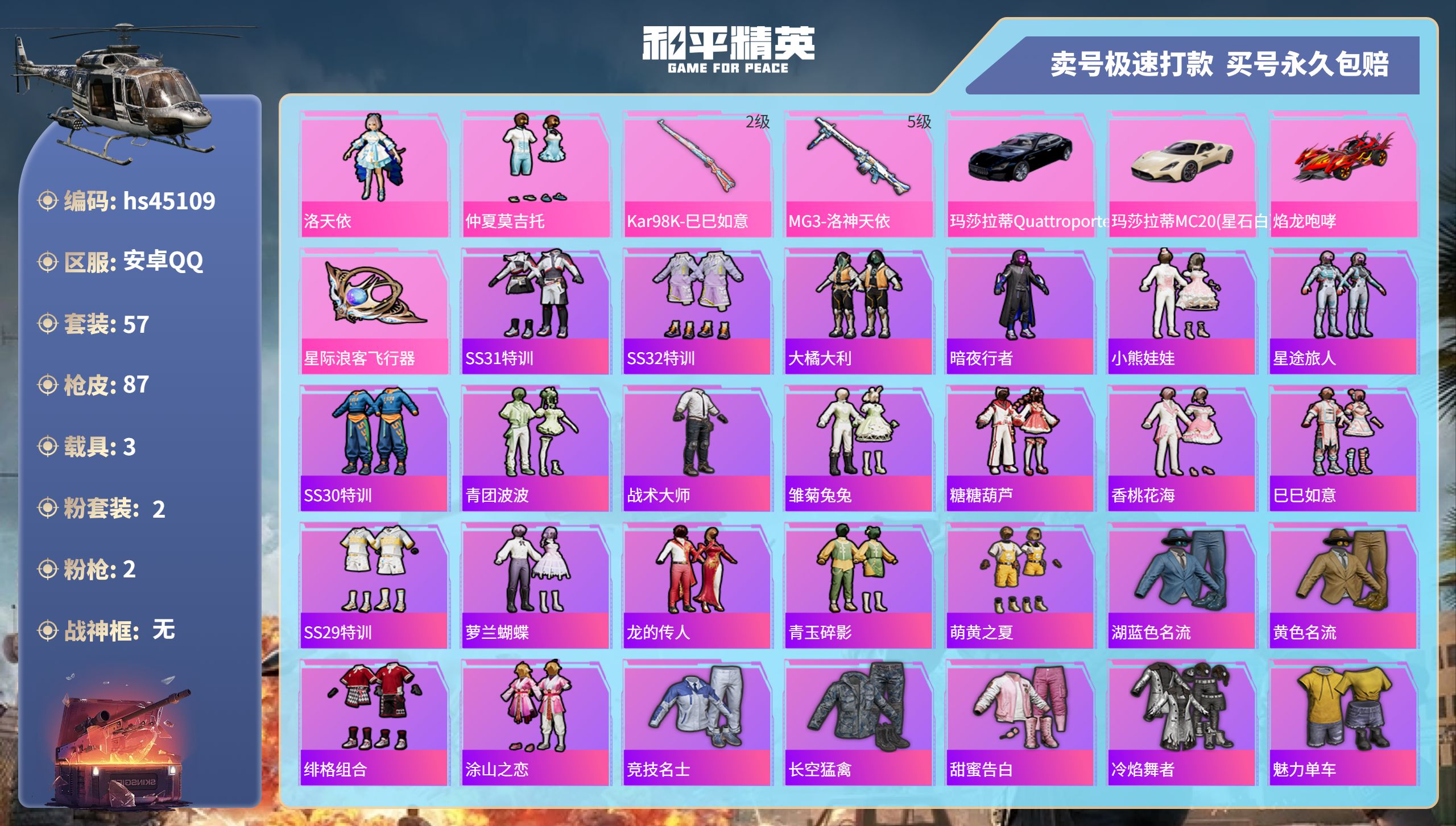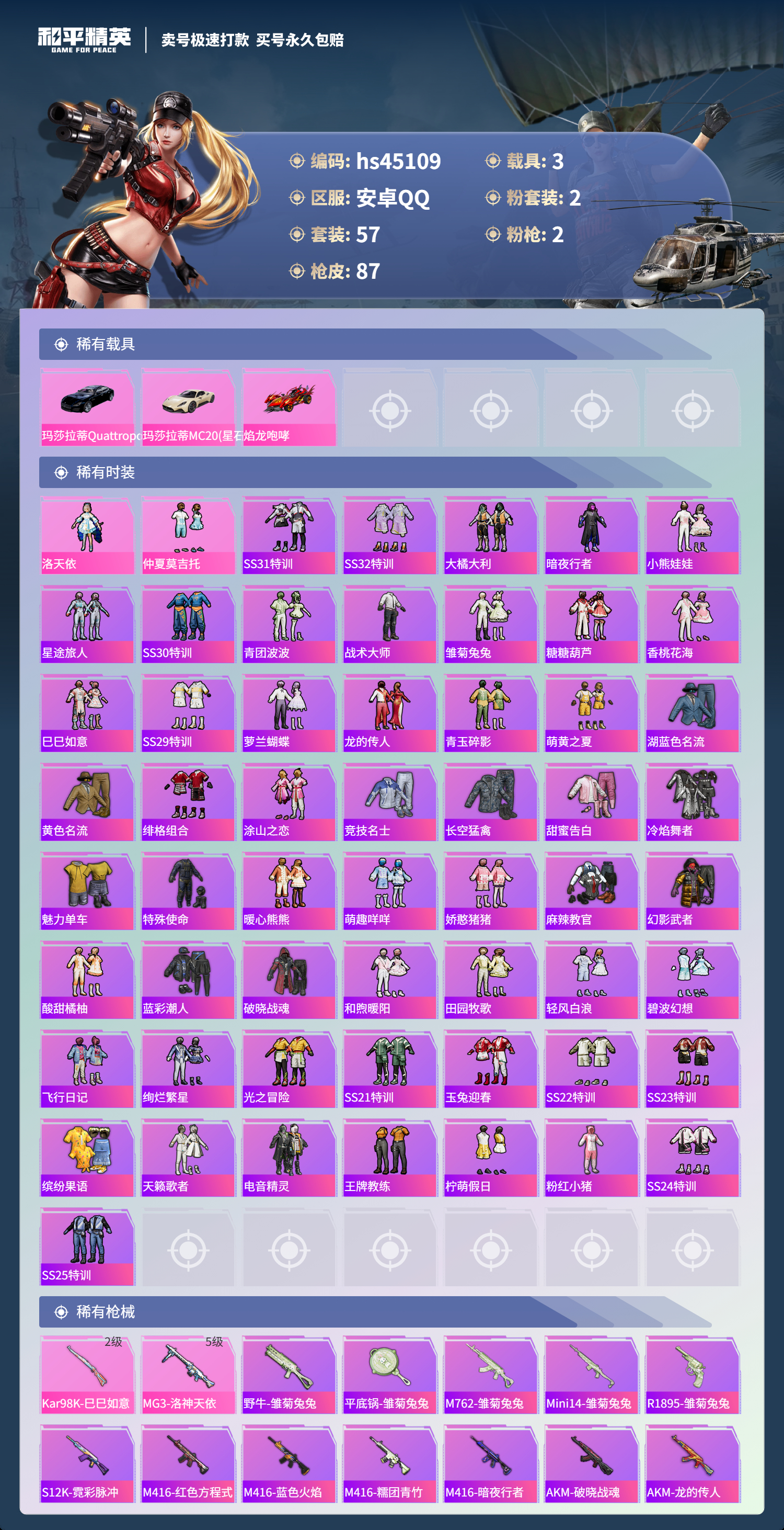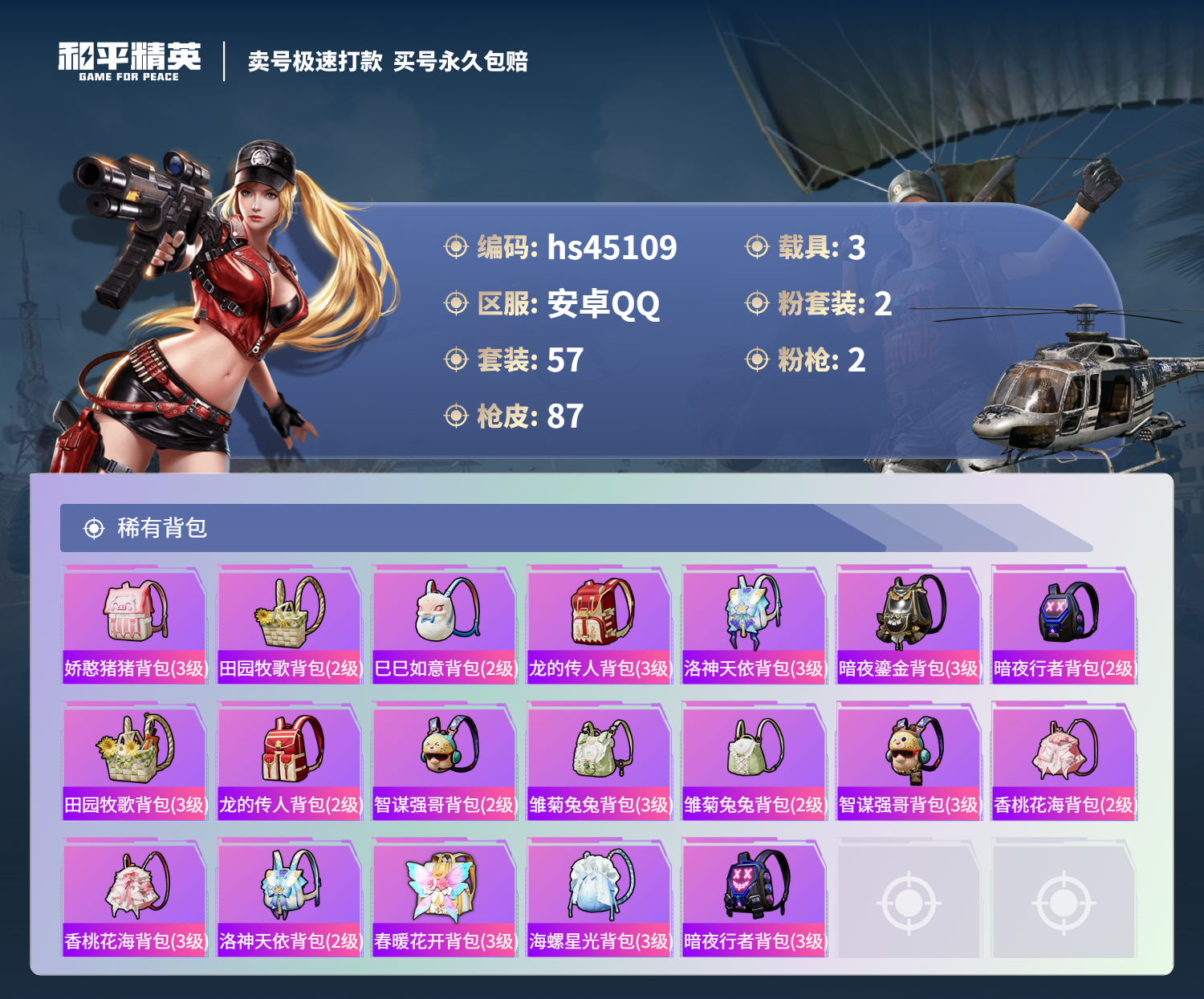 游戏区服:和平精英 / 安卓系统 / QQ账号