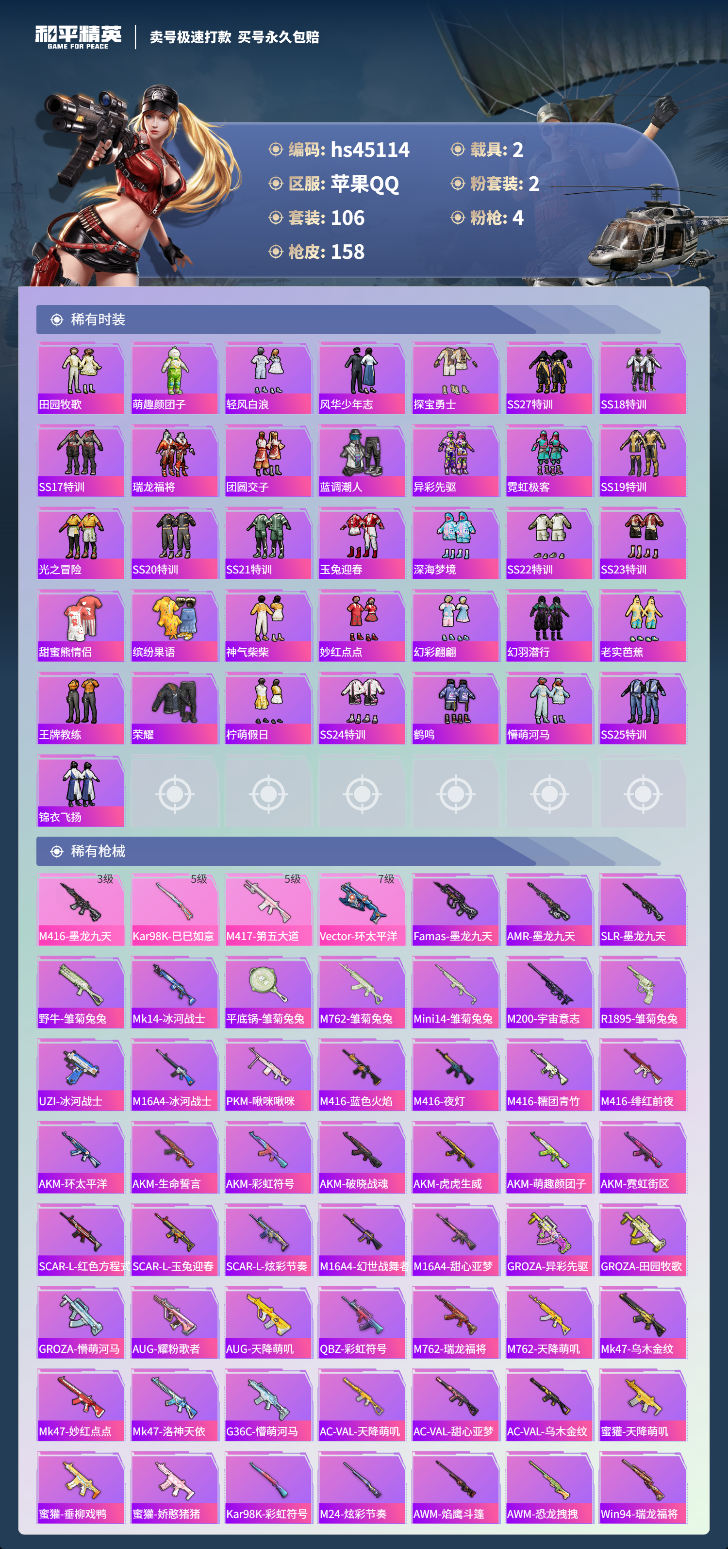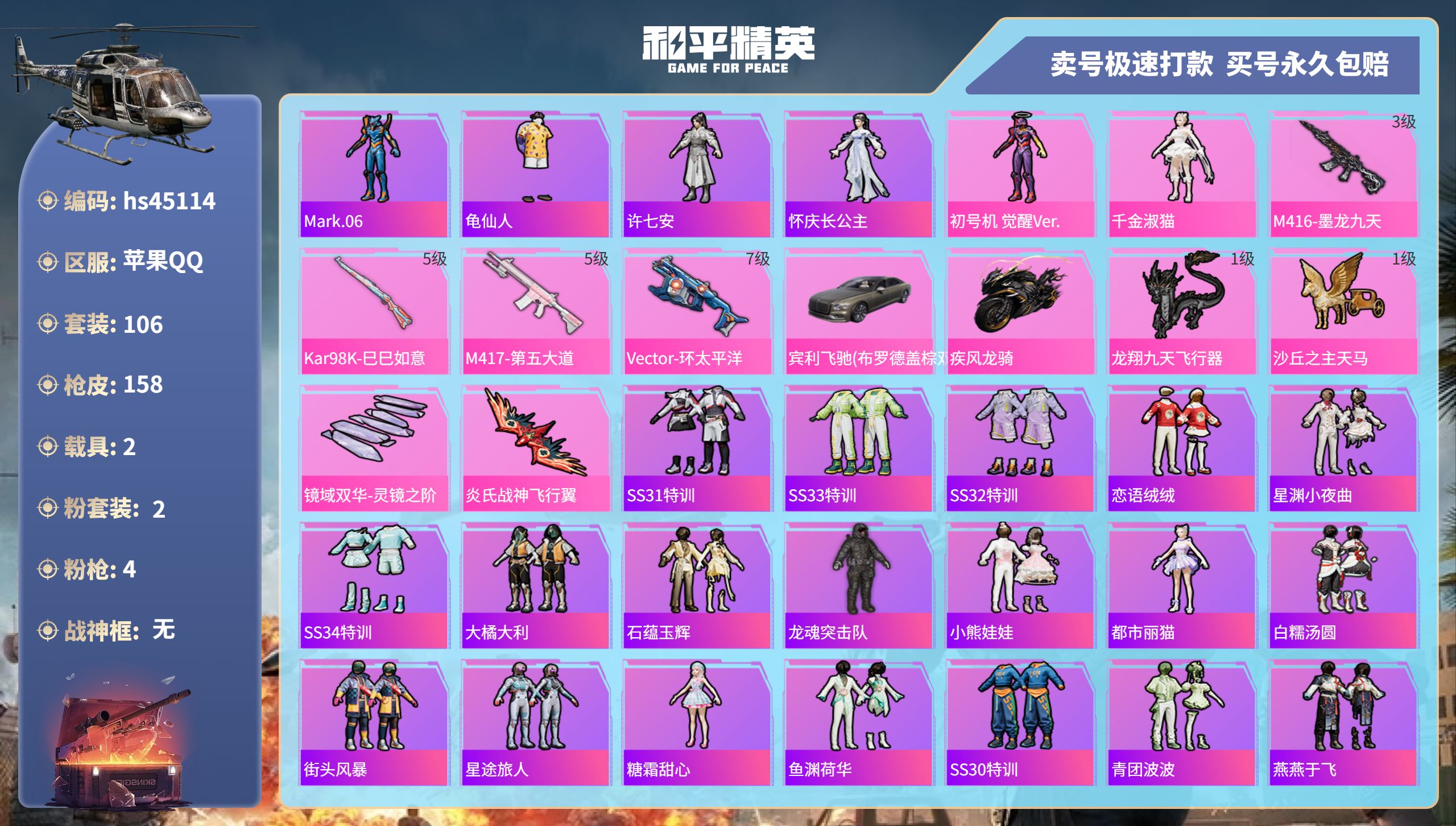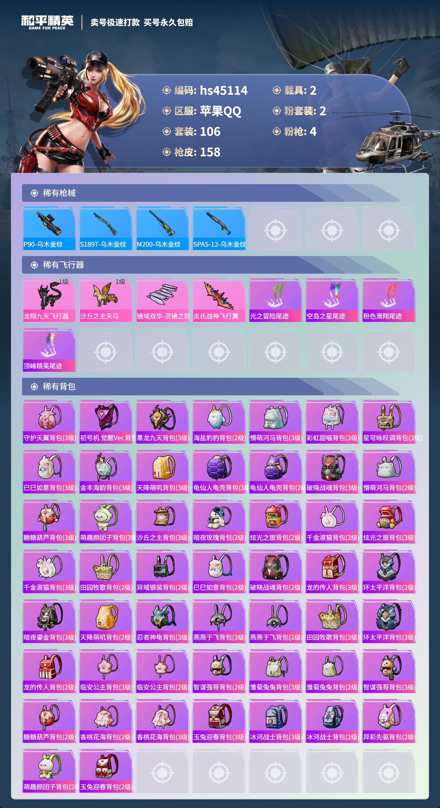 游戏区服:和平精英 / 苹果系统 / QQ帐号